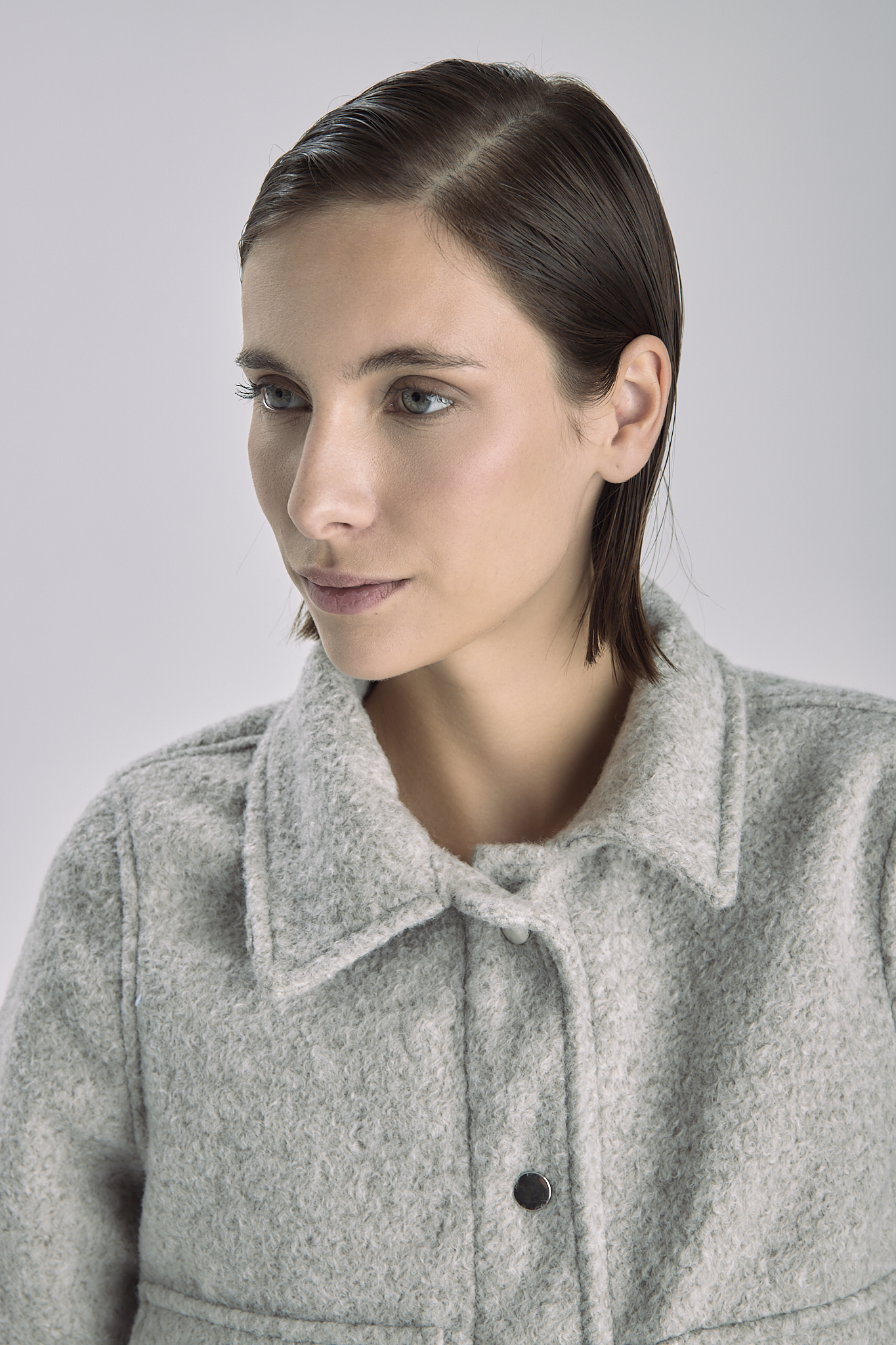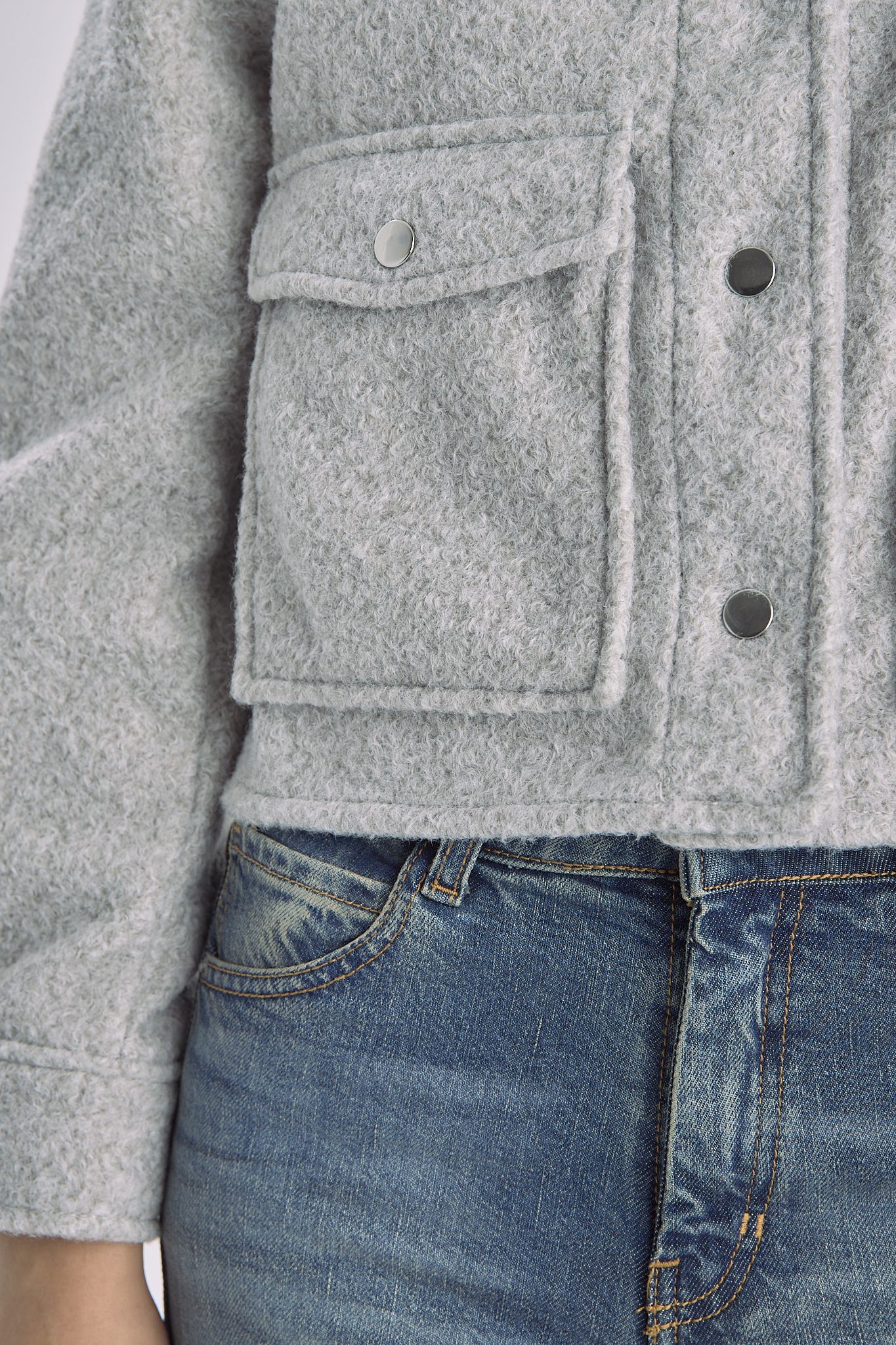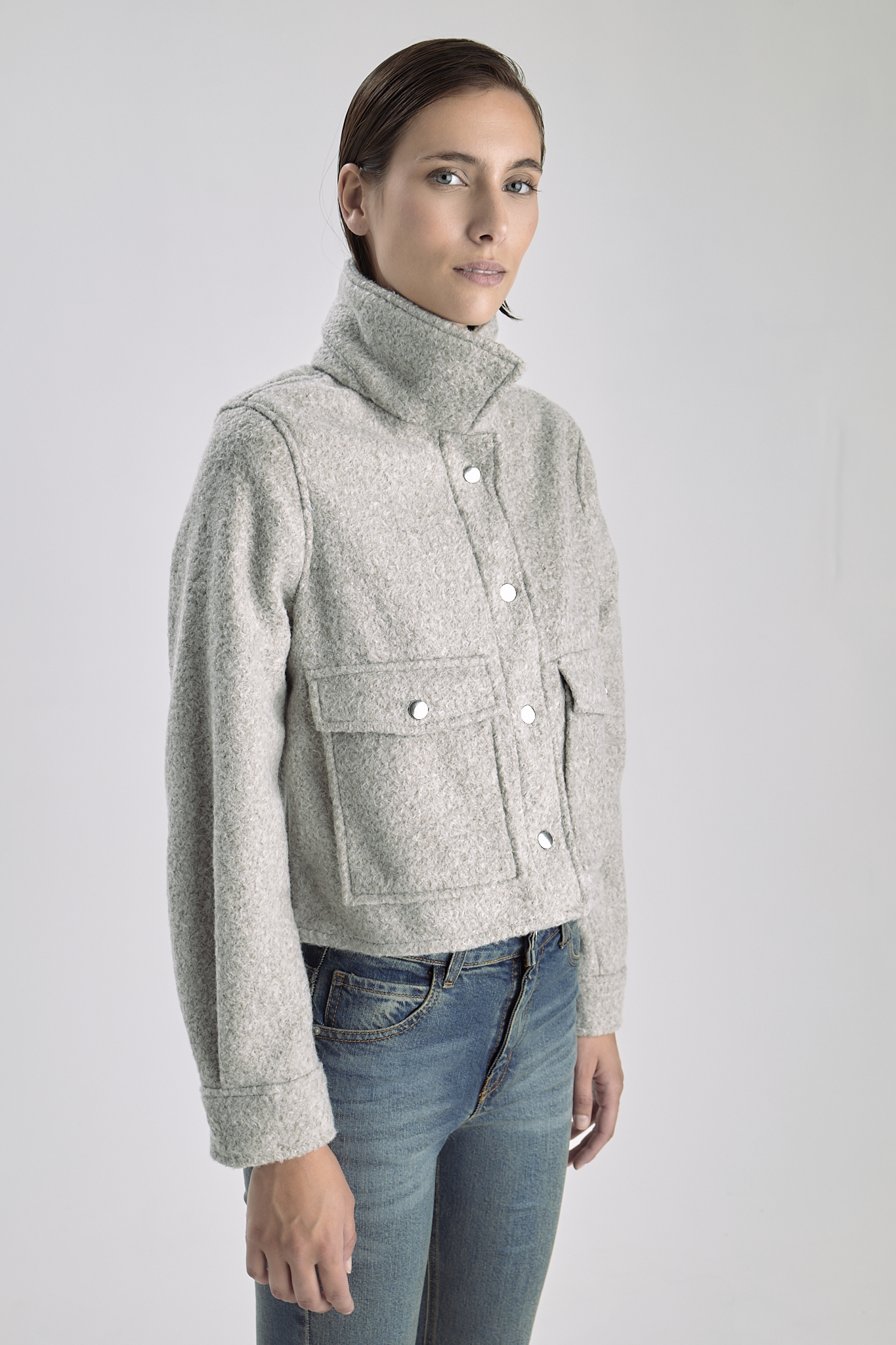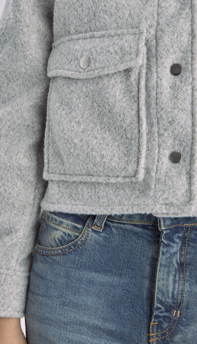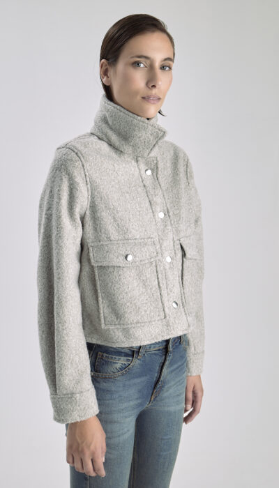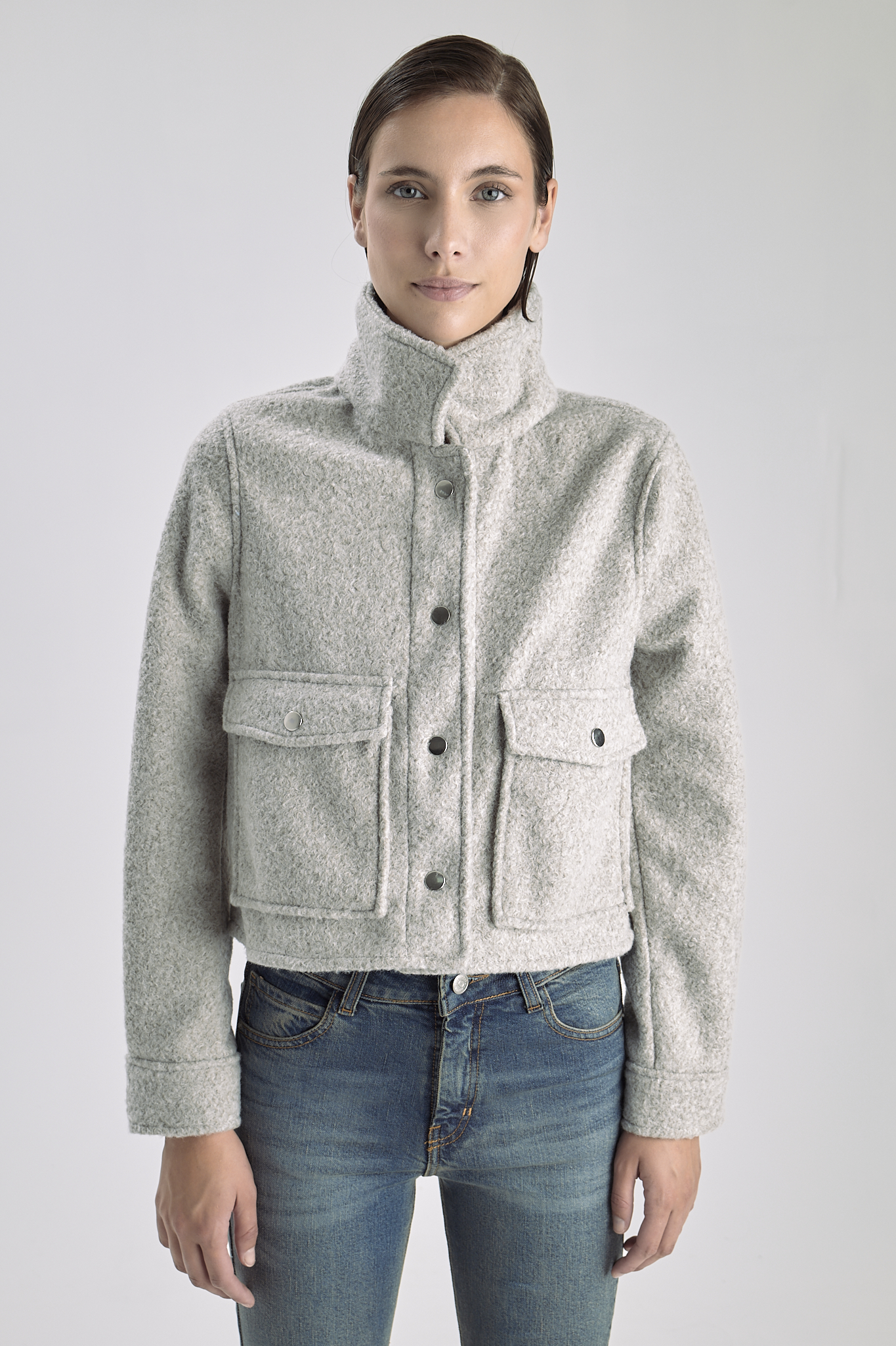 Chaqueta Gris Corta Con Bolsillos Plaque Con Tapa