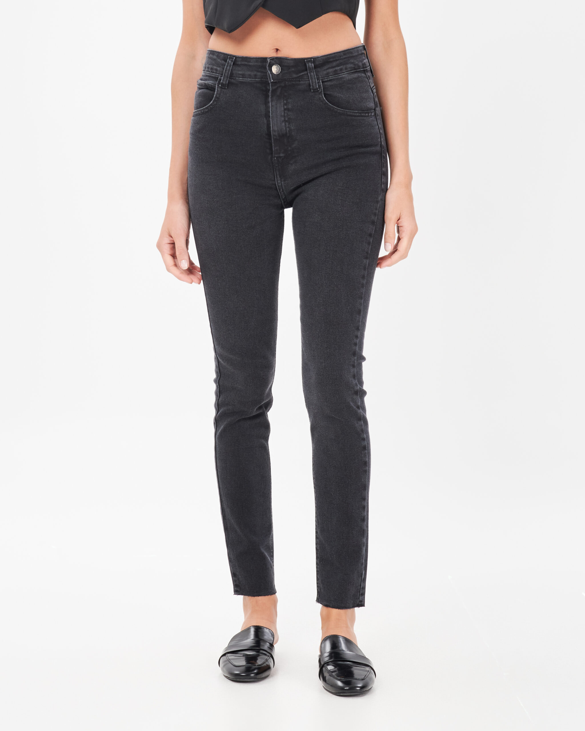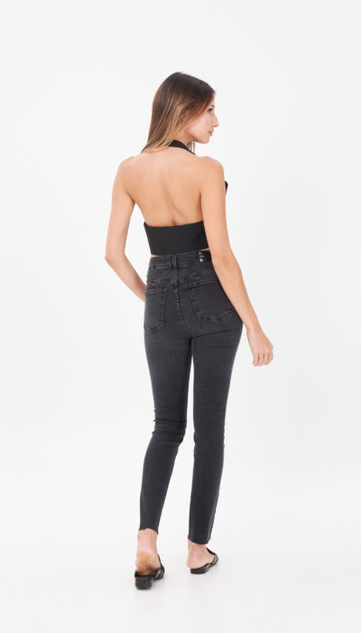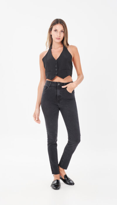 Chupin Jean Negro Gastado Ruedo Cortado