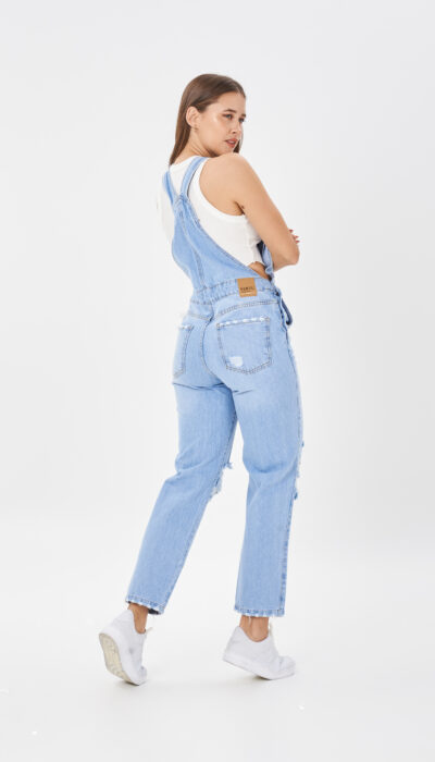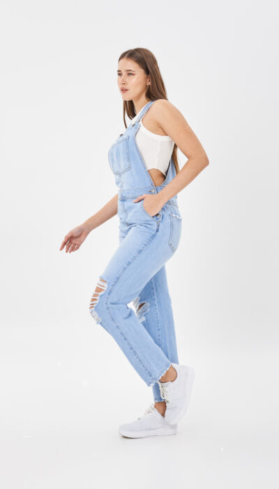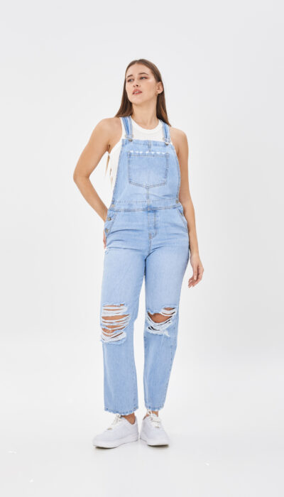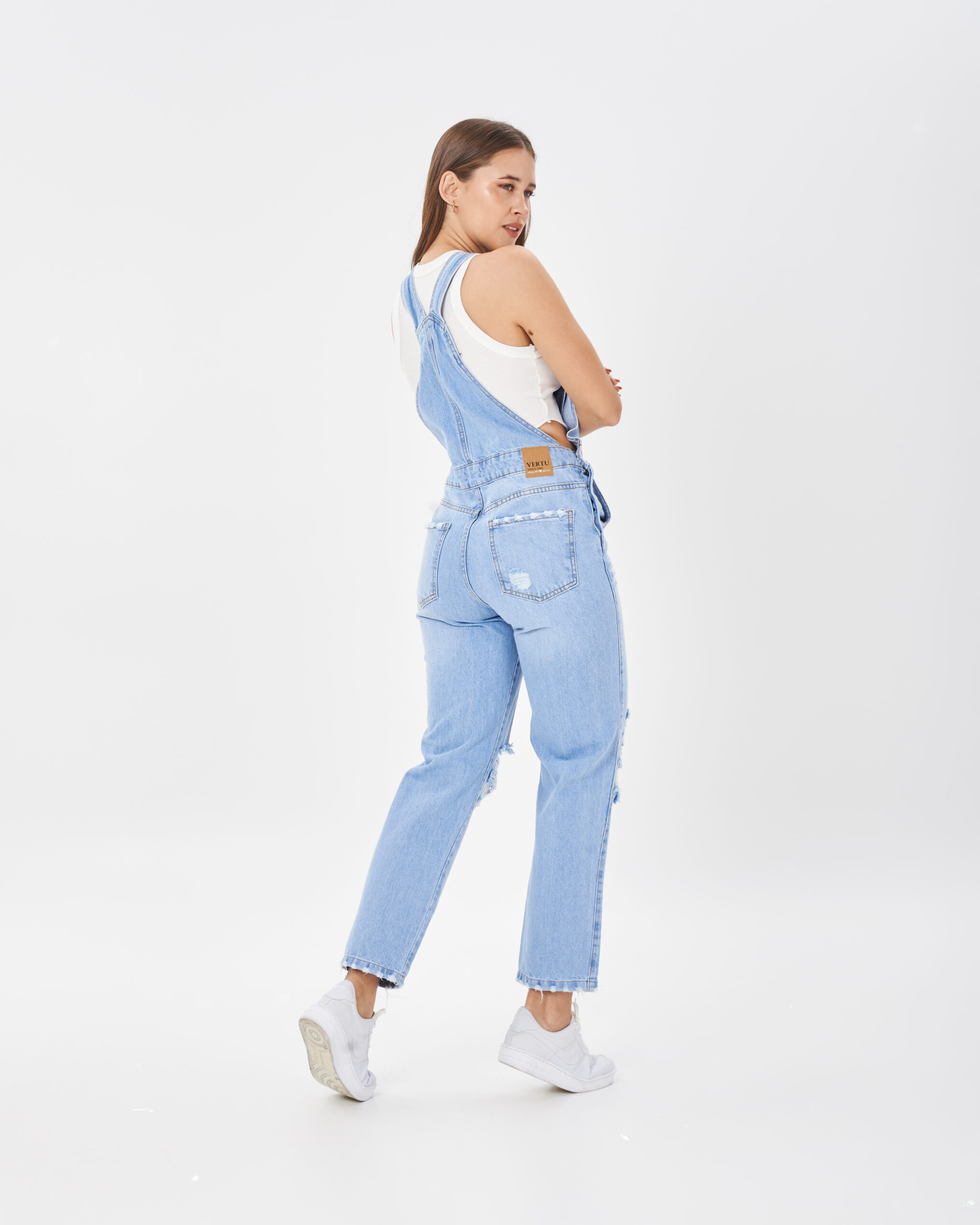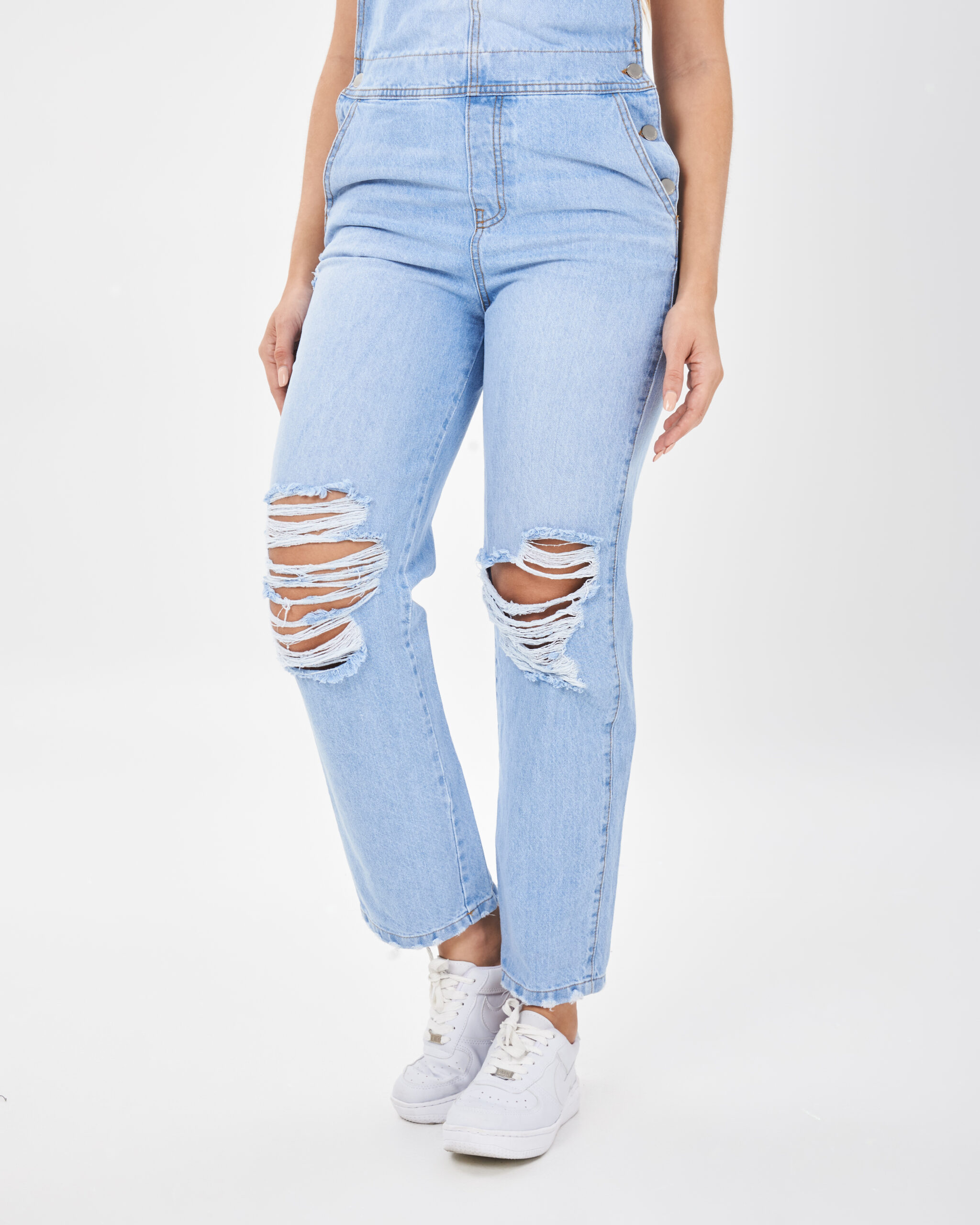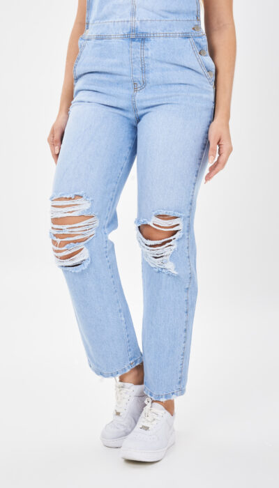 Jardinero Jean Largo Con Rotura + Ruedo Gastado
