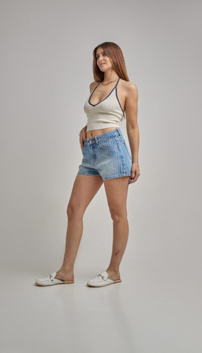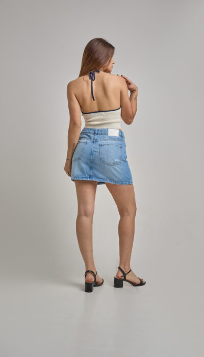 Mini Jean Celeste Con Varias Roturitas Rígido