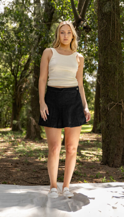 Mini Short Jean Negro Tableada Crossover Rígido