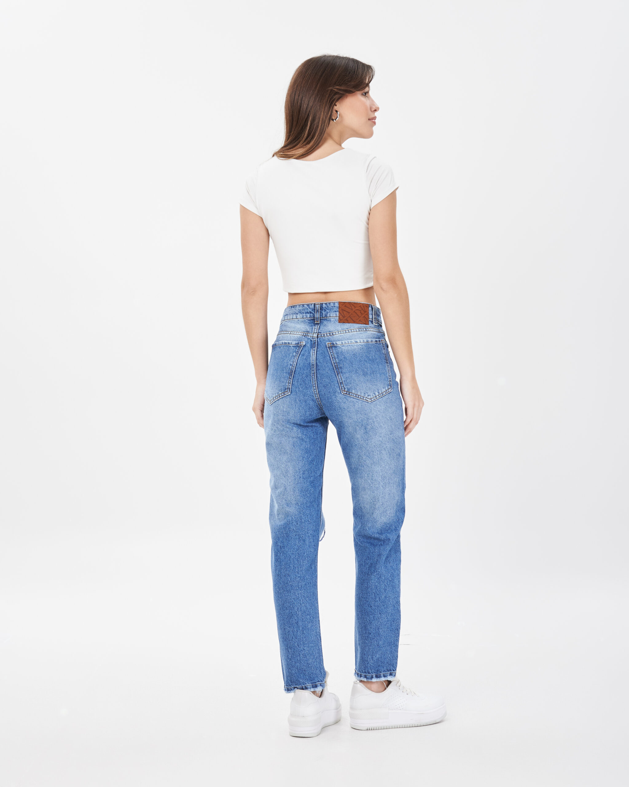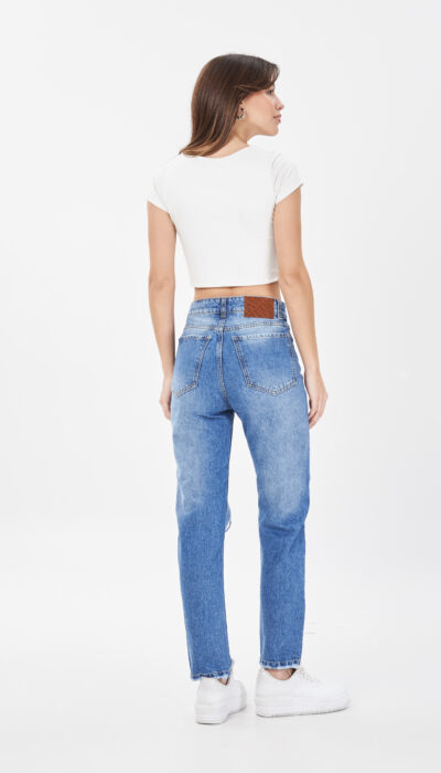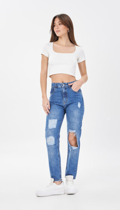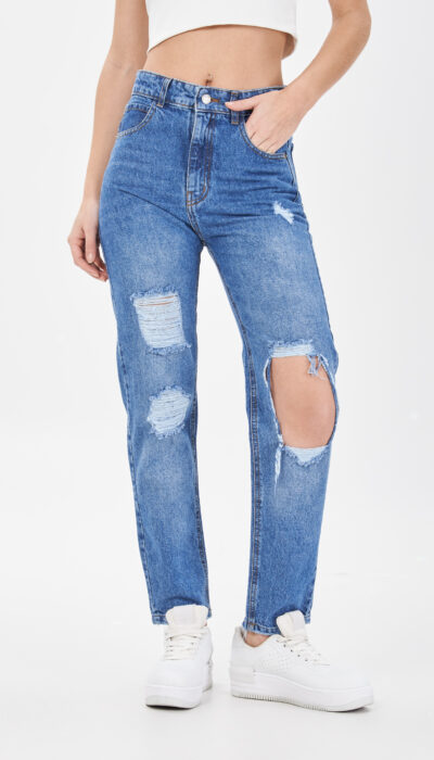 Pantalon Jean Azul Localizado Con Bigotes y Roturas Grandes