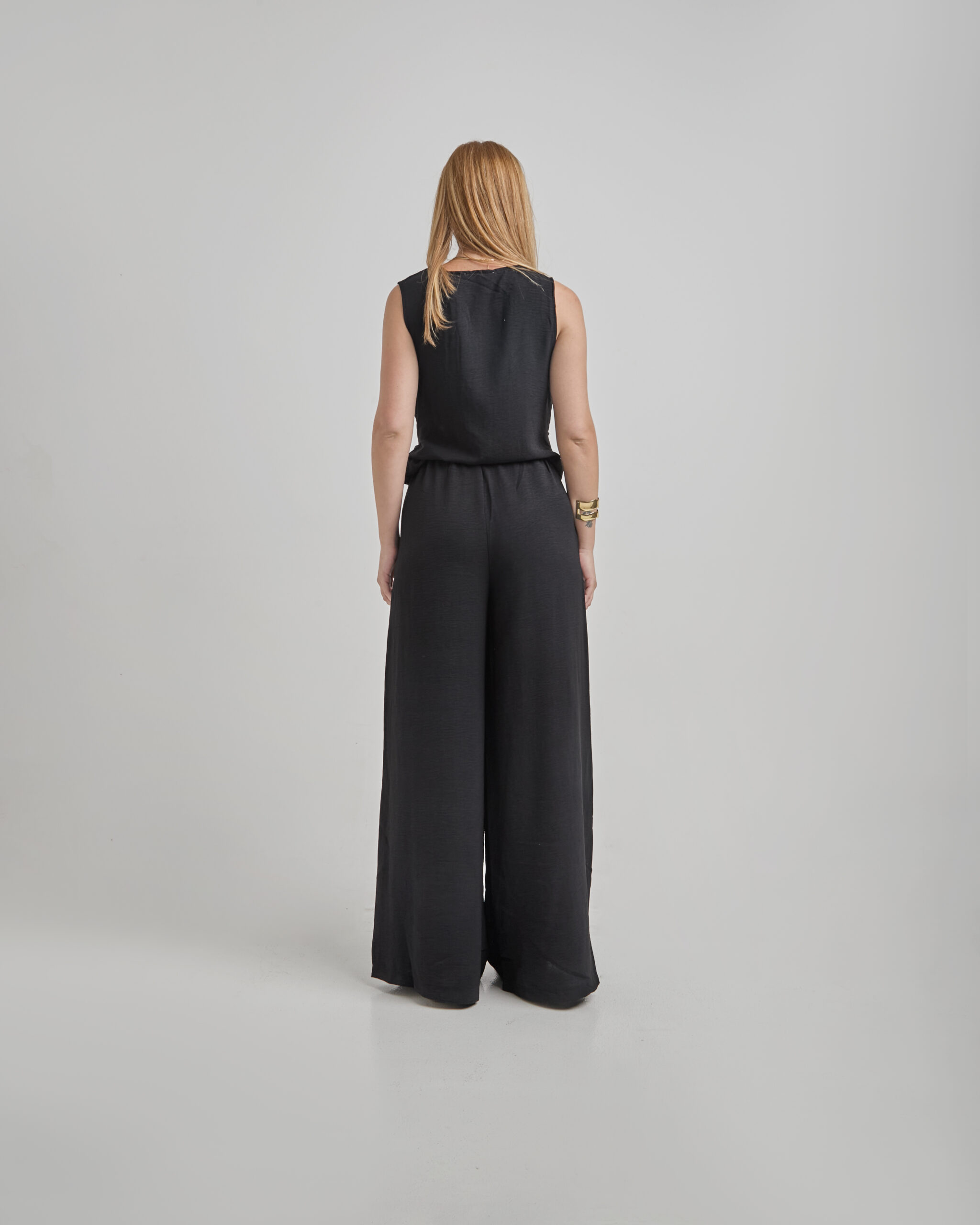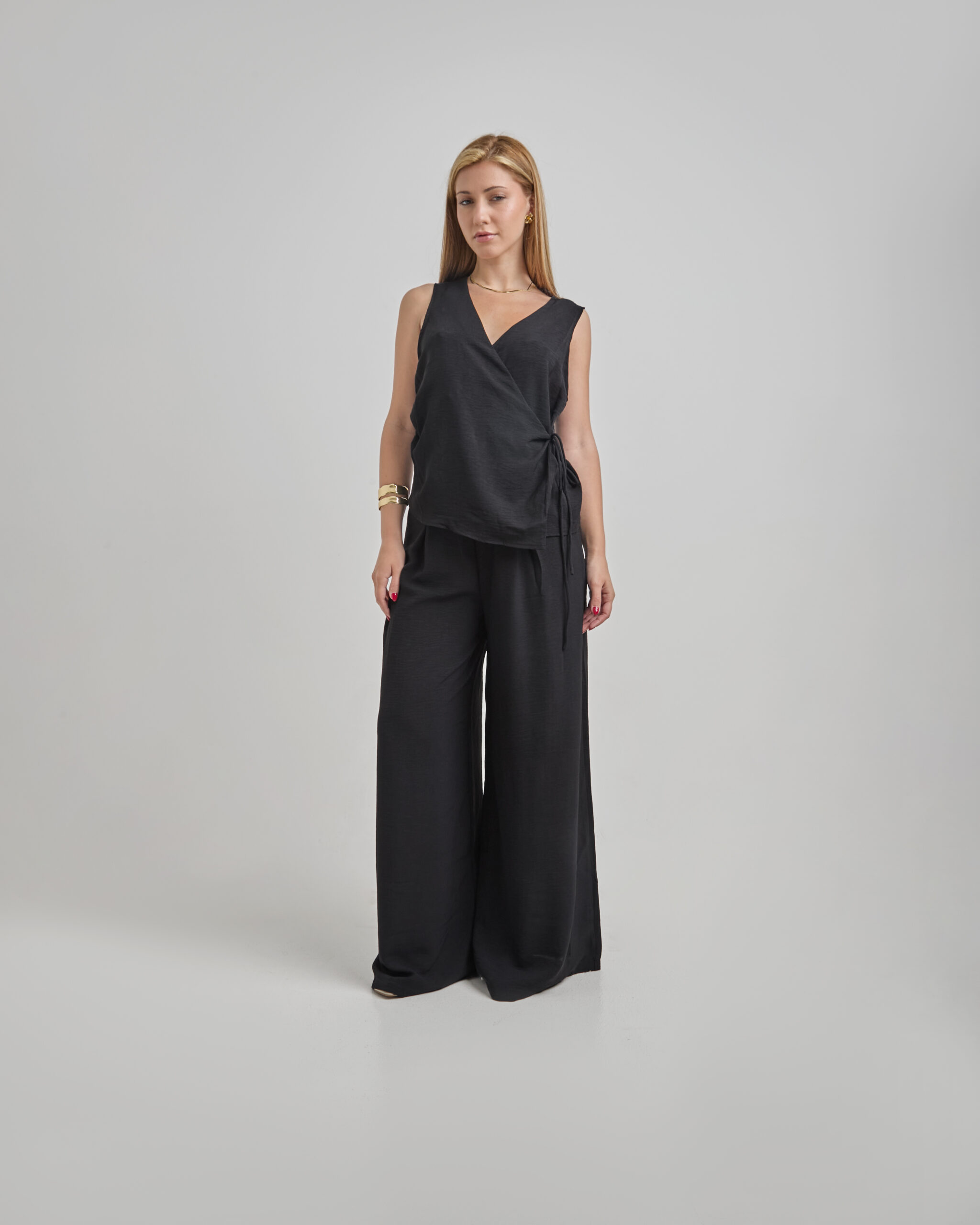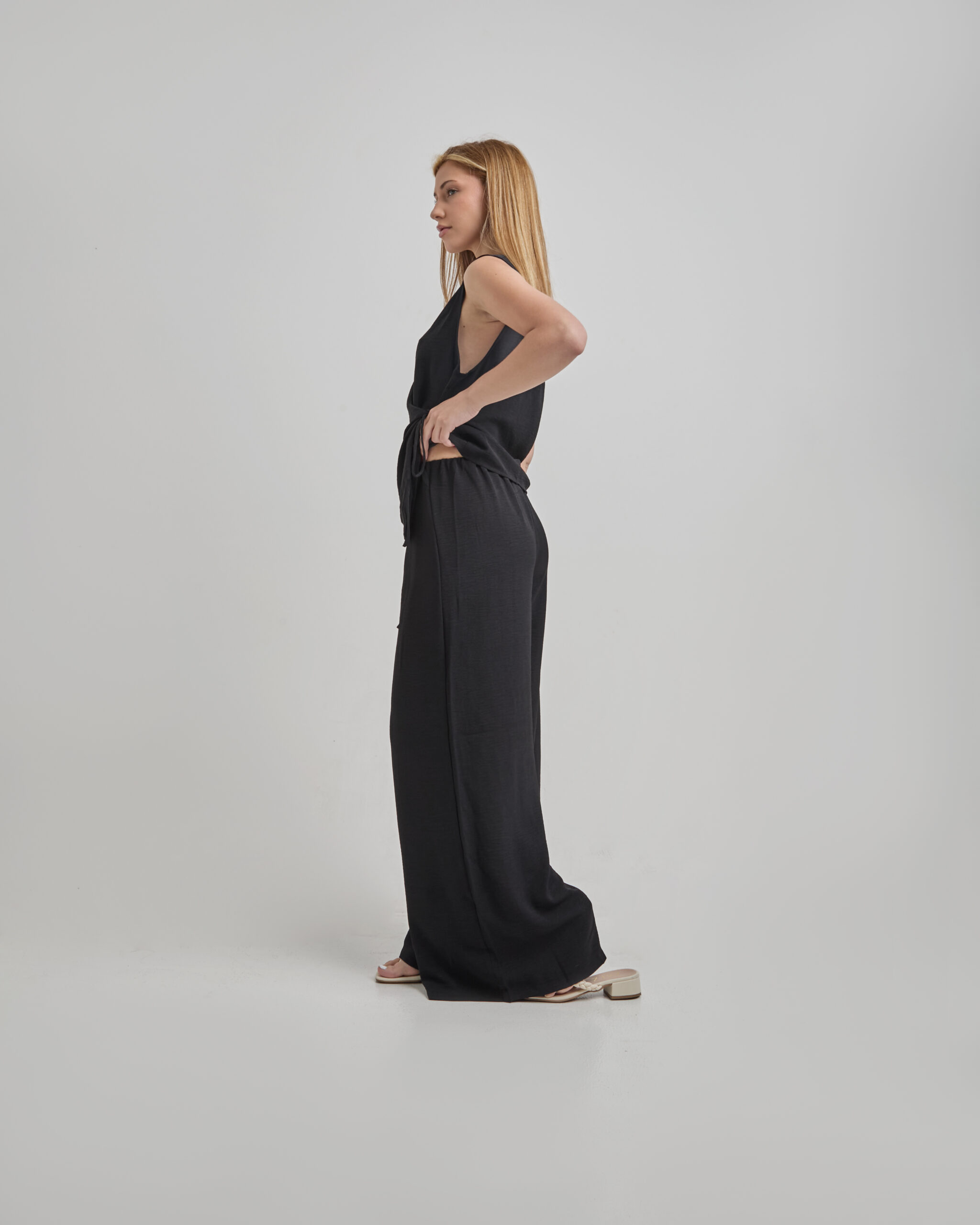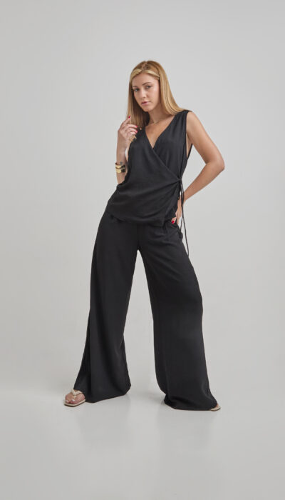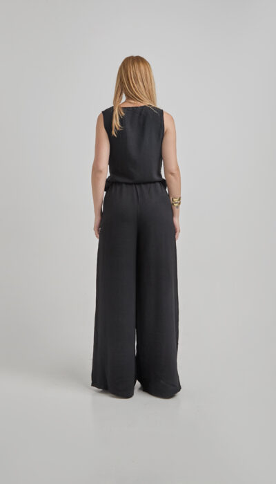 Pantalón Negro Larga Cintura Con Pinzas
