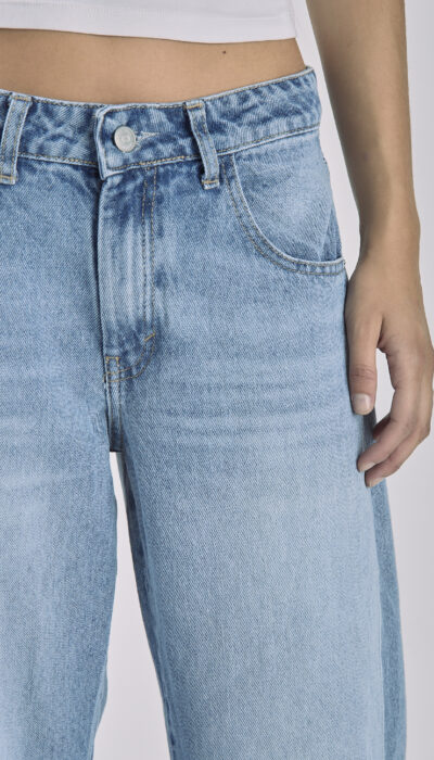 Pantalón Jean Azul Localizado Con Recorte y Pinza Balloon Rígido Tiro Alto