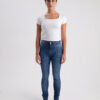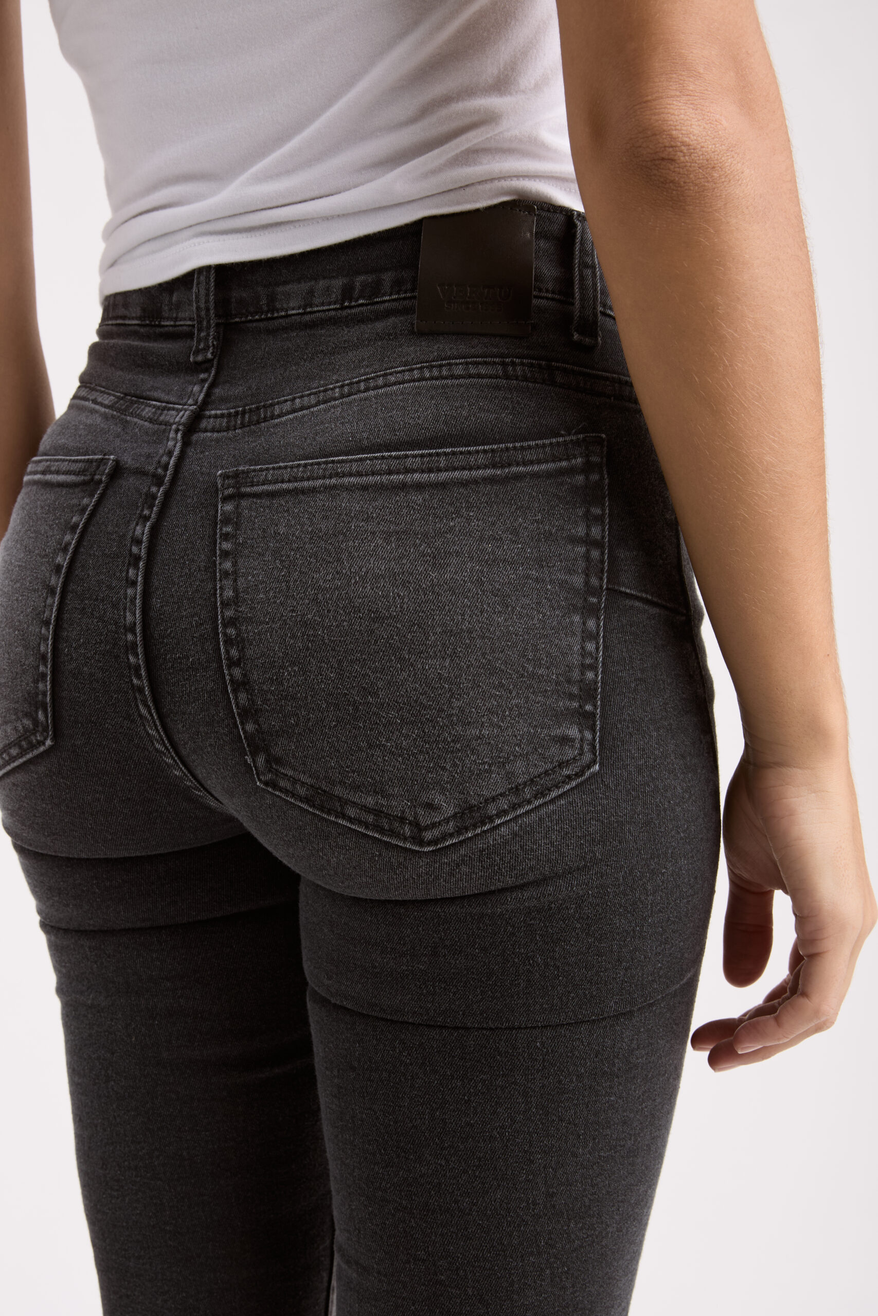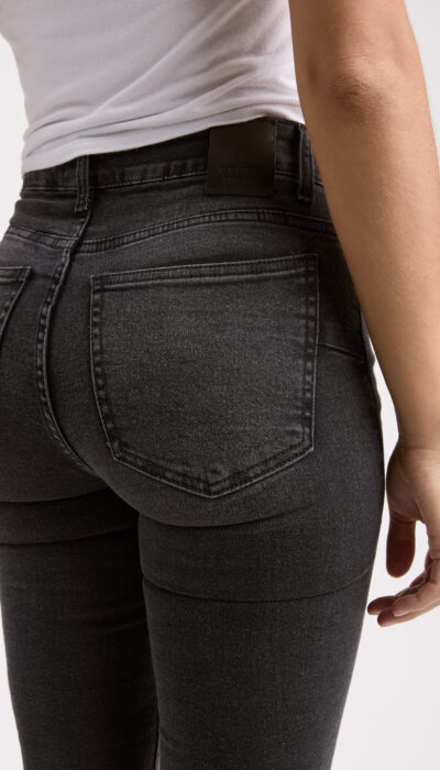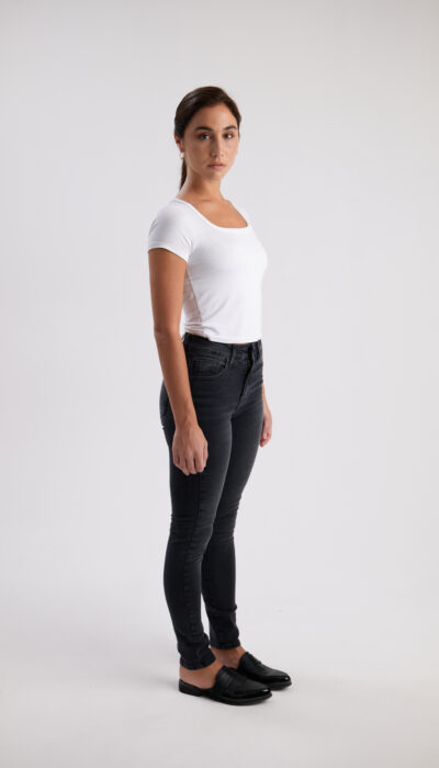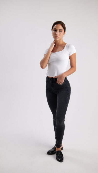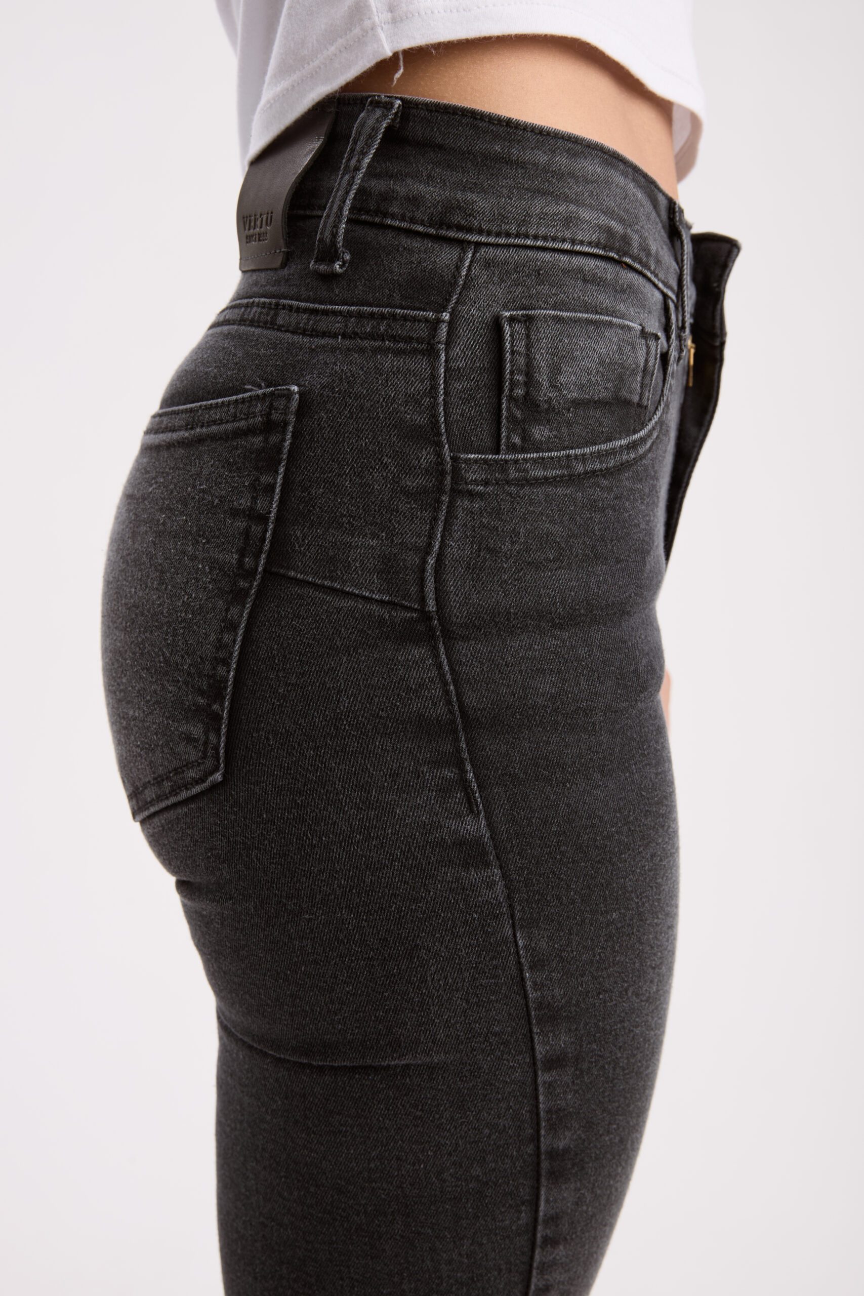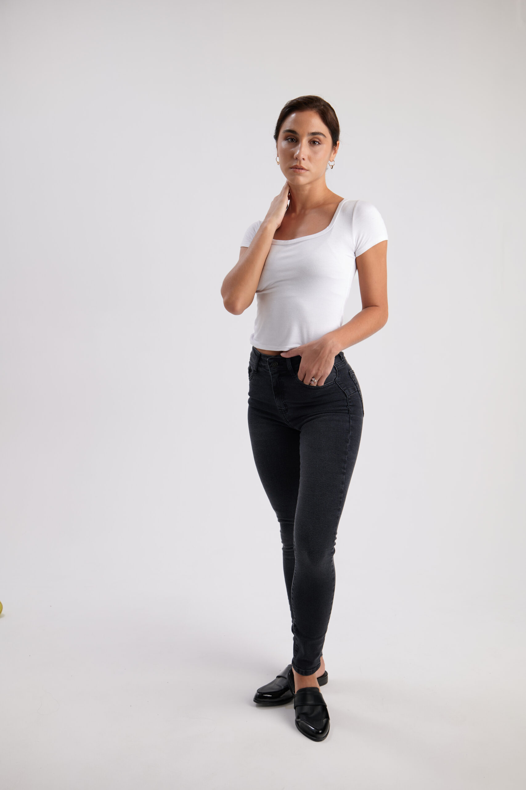 Pantalón Jean Chupin Negro Gastado Pinza Trasera Lateral Elastizado Tiro Medio