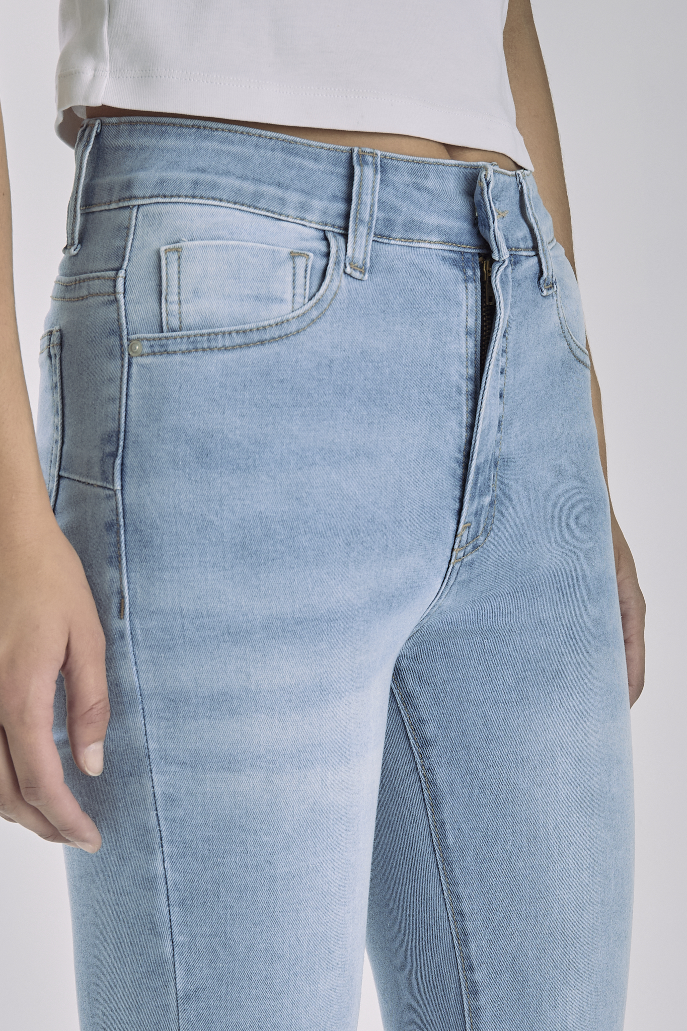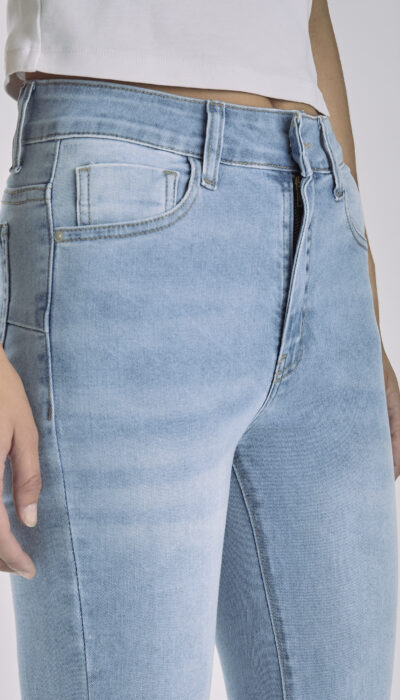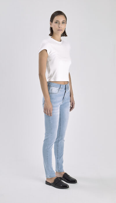 Pantalón Jean Chupin Celeste Con Bigotes Y Pinzas Trasera Lateral Elastizado Tiro Medio