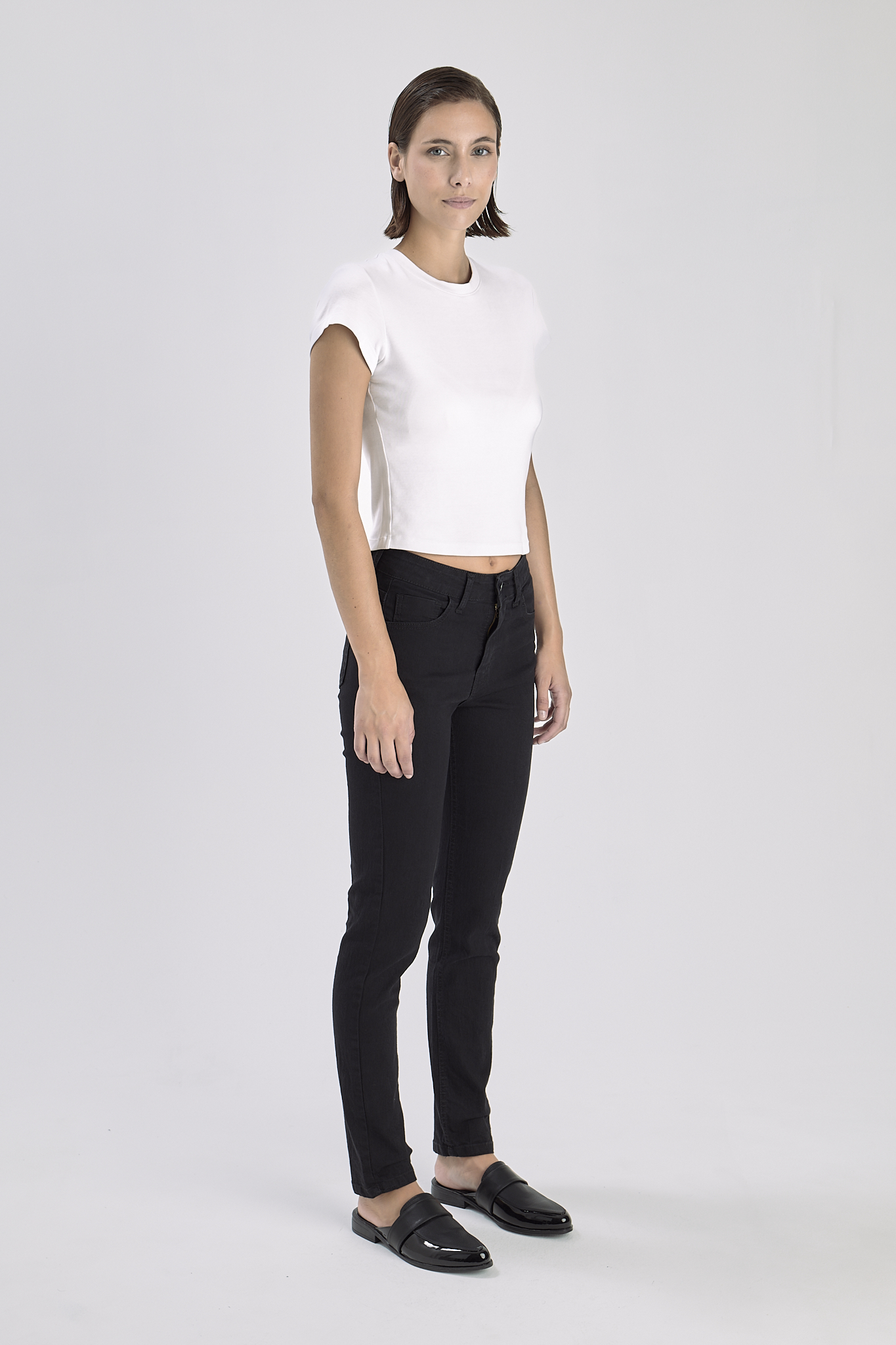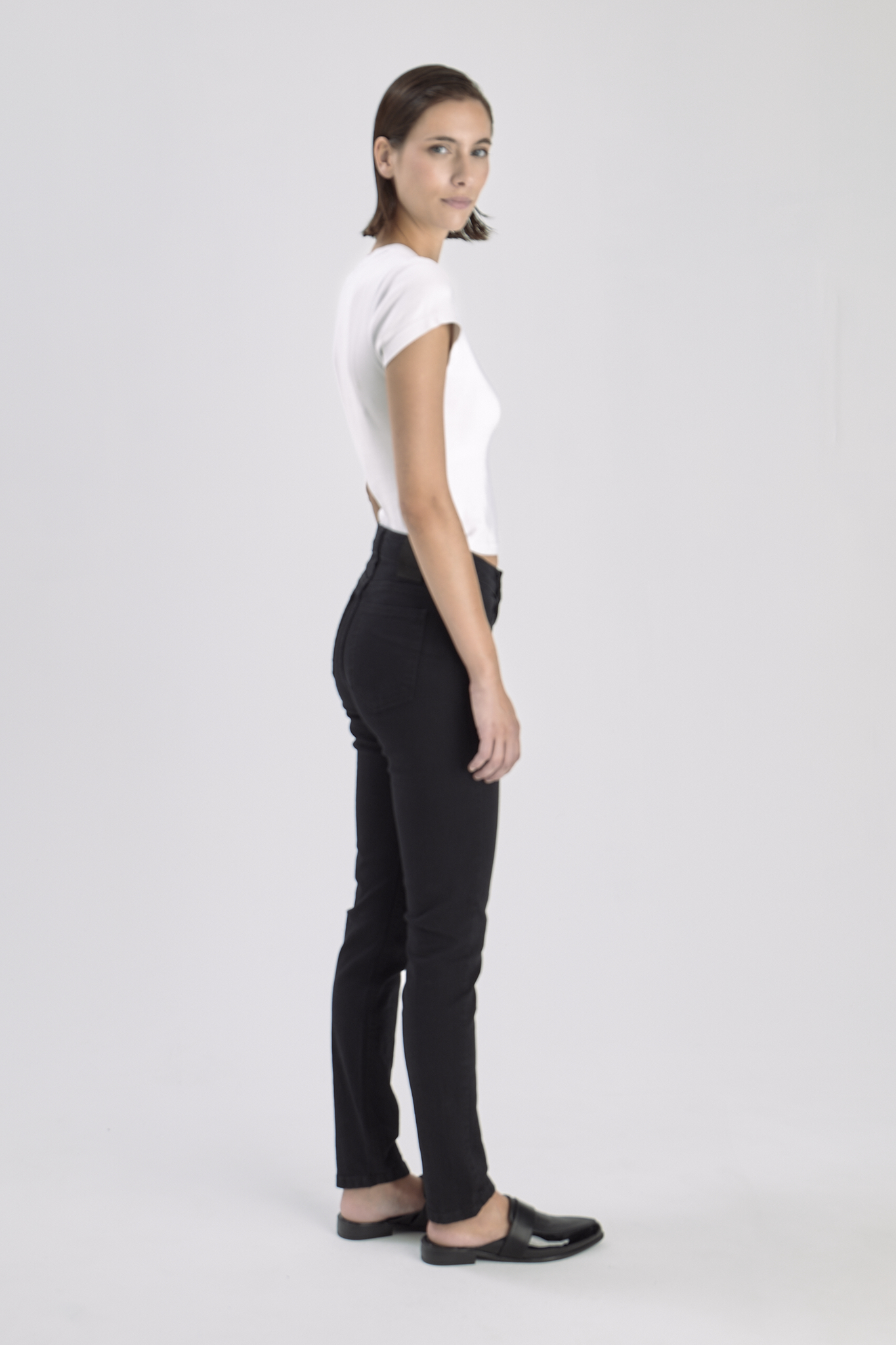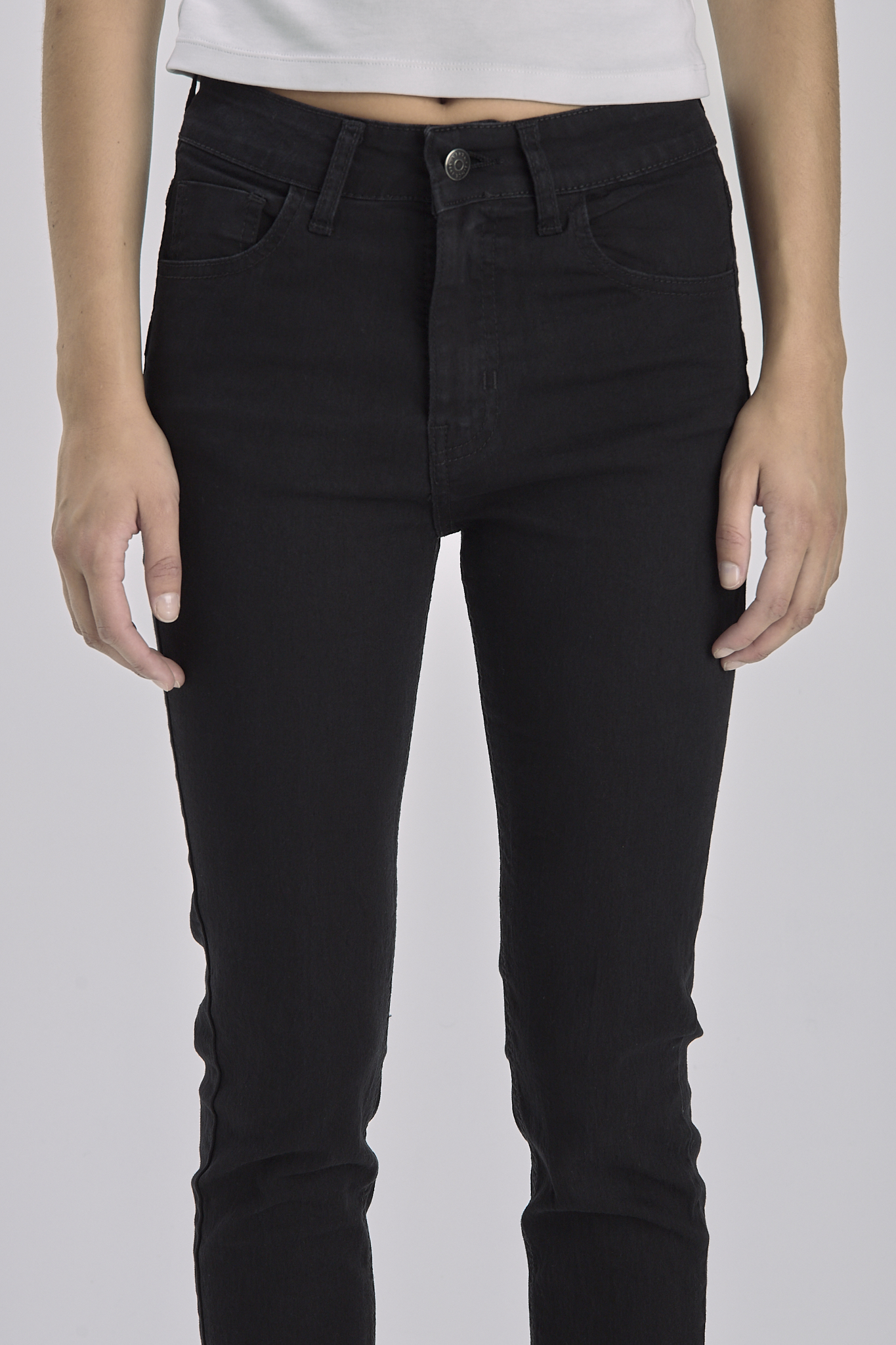 Pantalón Jean Chupin Negro Con Pinza Lateral Trasera Clásico Elastizado Tiro Medio