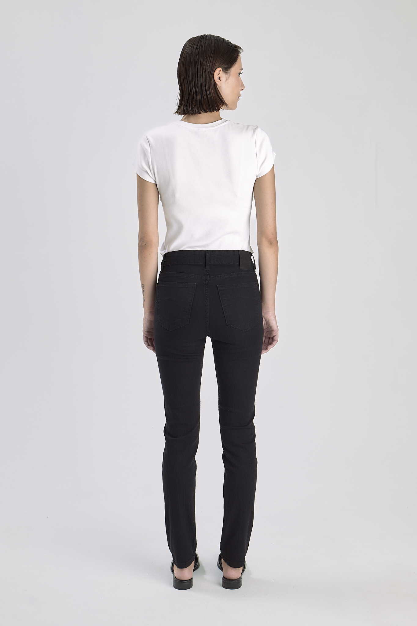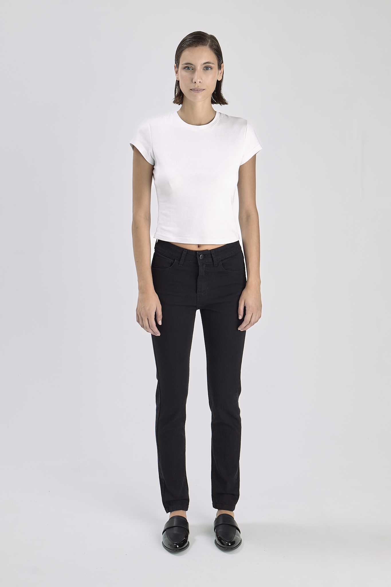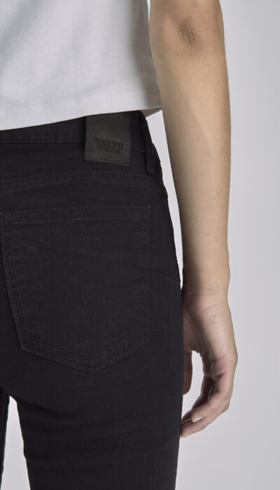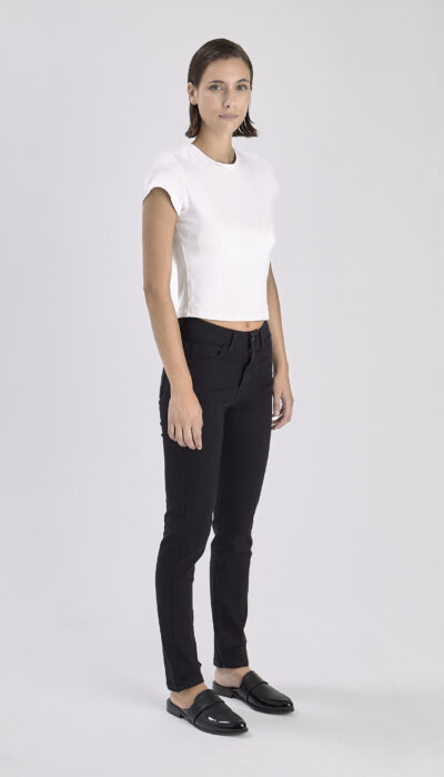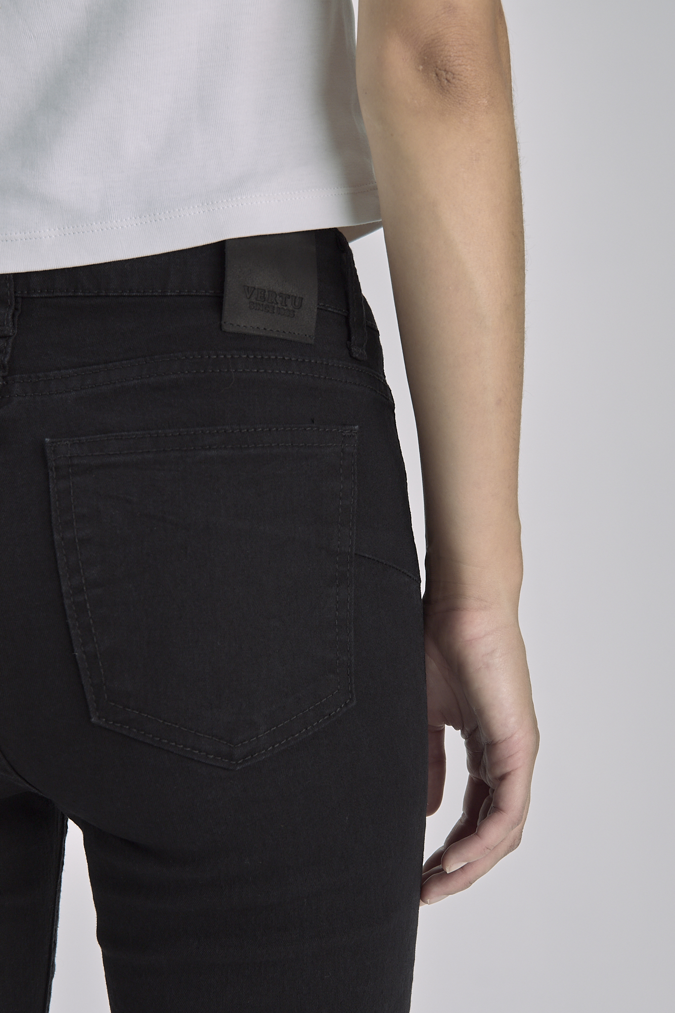 Pantalón Jean Chupin Negro Con Pinza Lateral Trasera Clásico Elastizado Tiro Medio