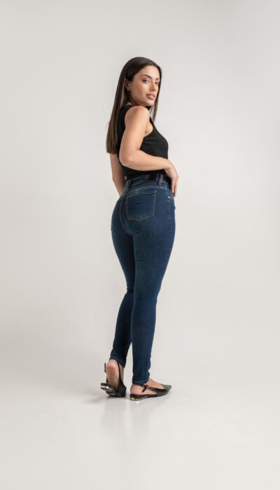 Pantalón Jean Chupin Azul Localizado Hilo Naranja Clásico Elastizado