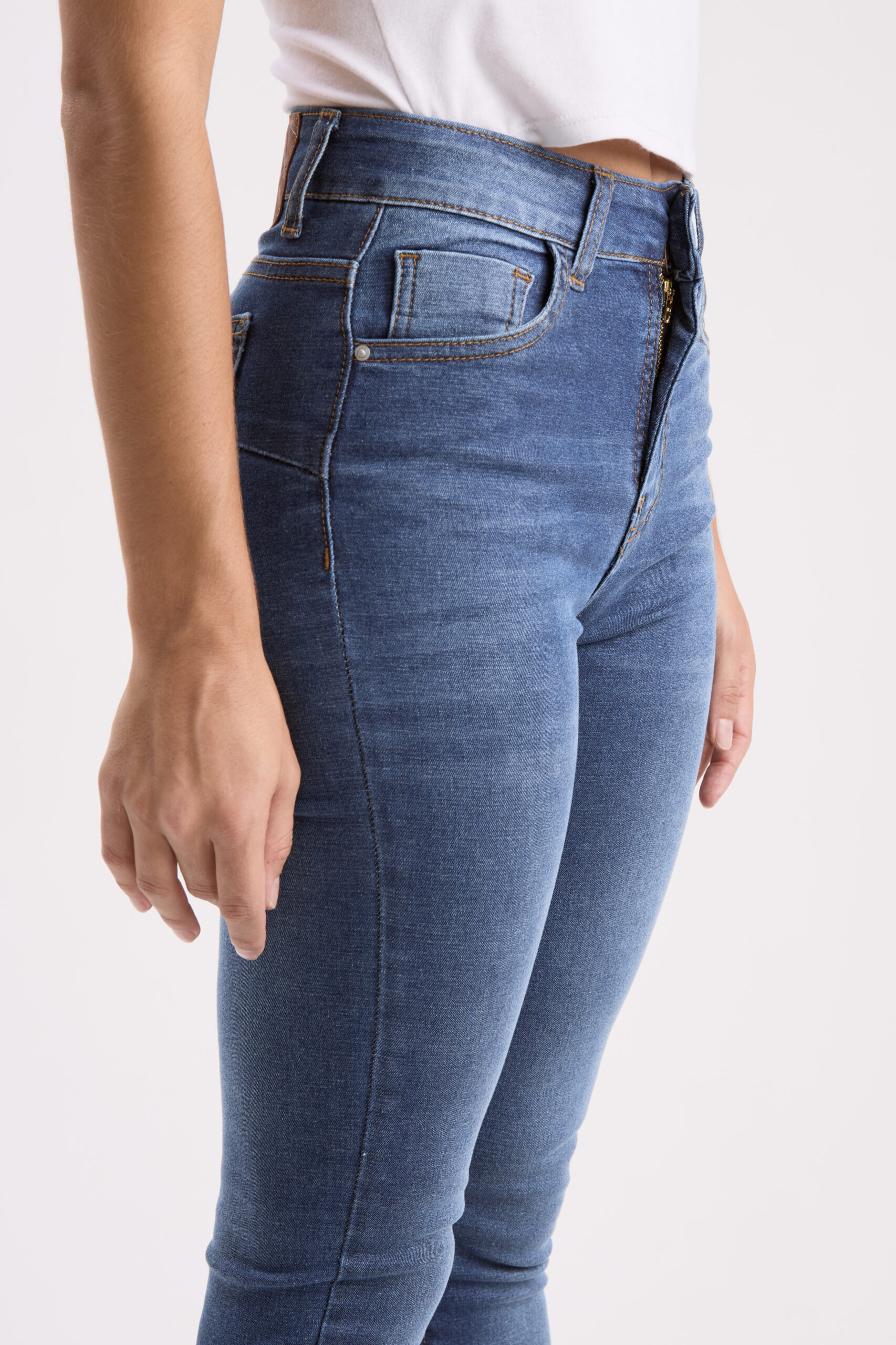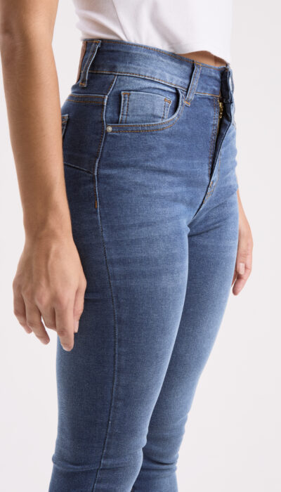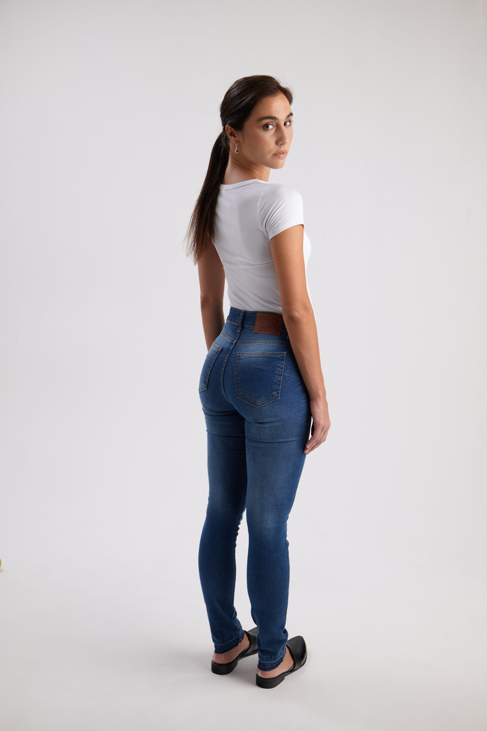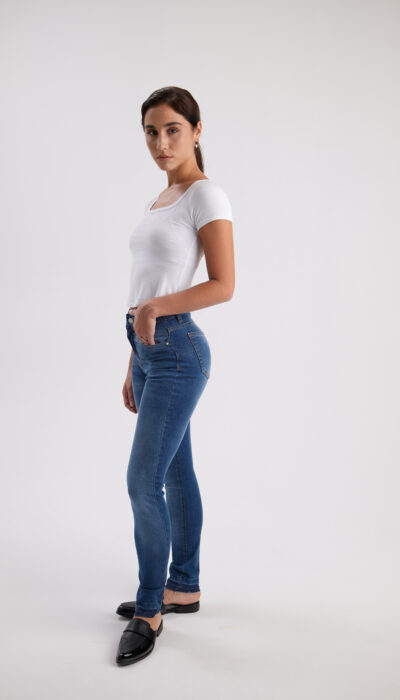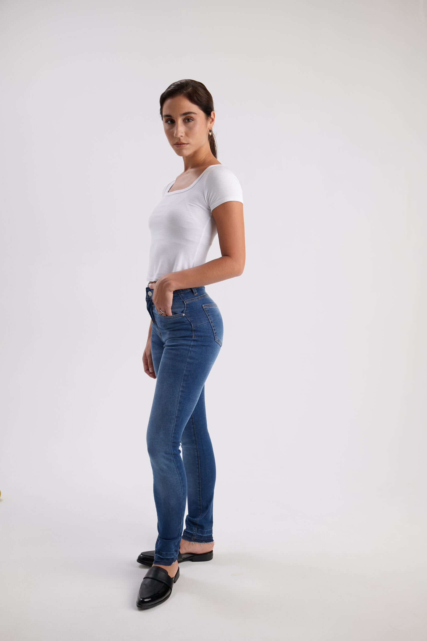Pantalón Jean Chupin Azul Localizado Con Bigote Y Pinza Lateral Trasera Ruedo desatado Elastizado Tiro Medio