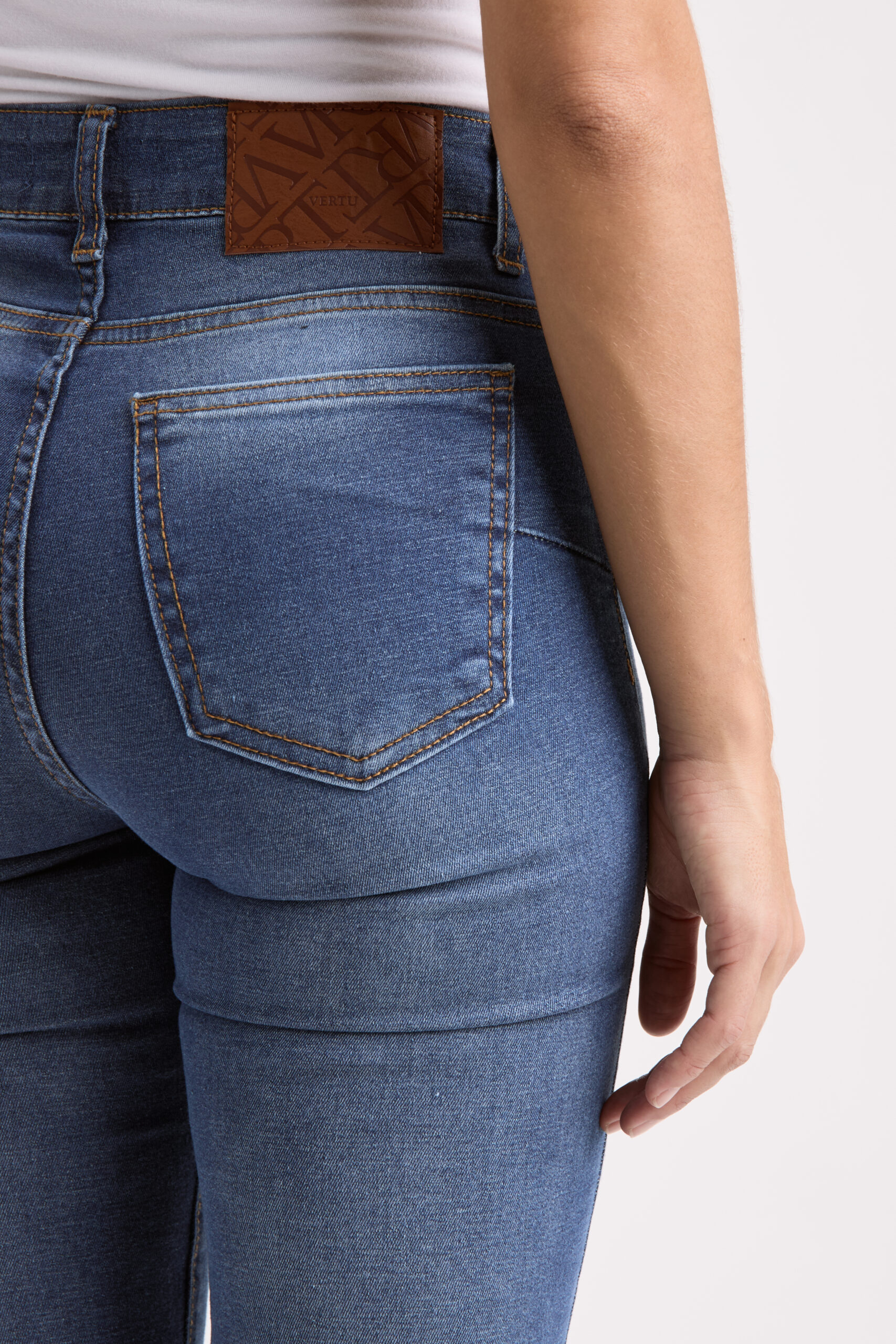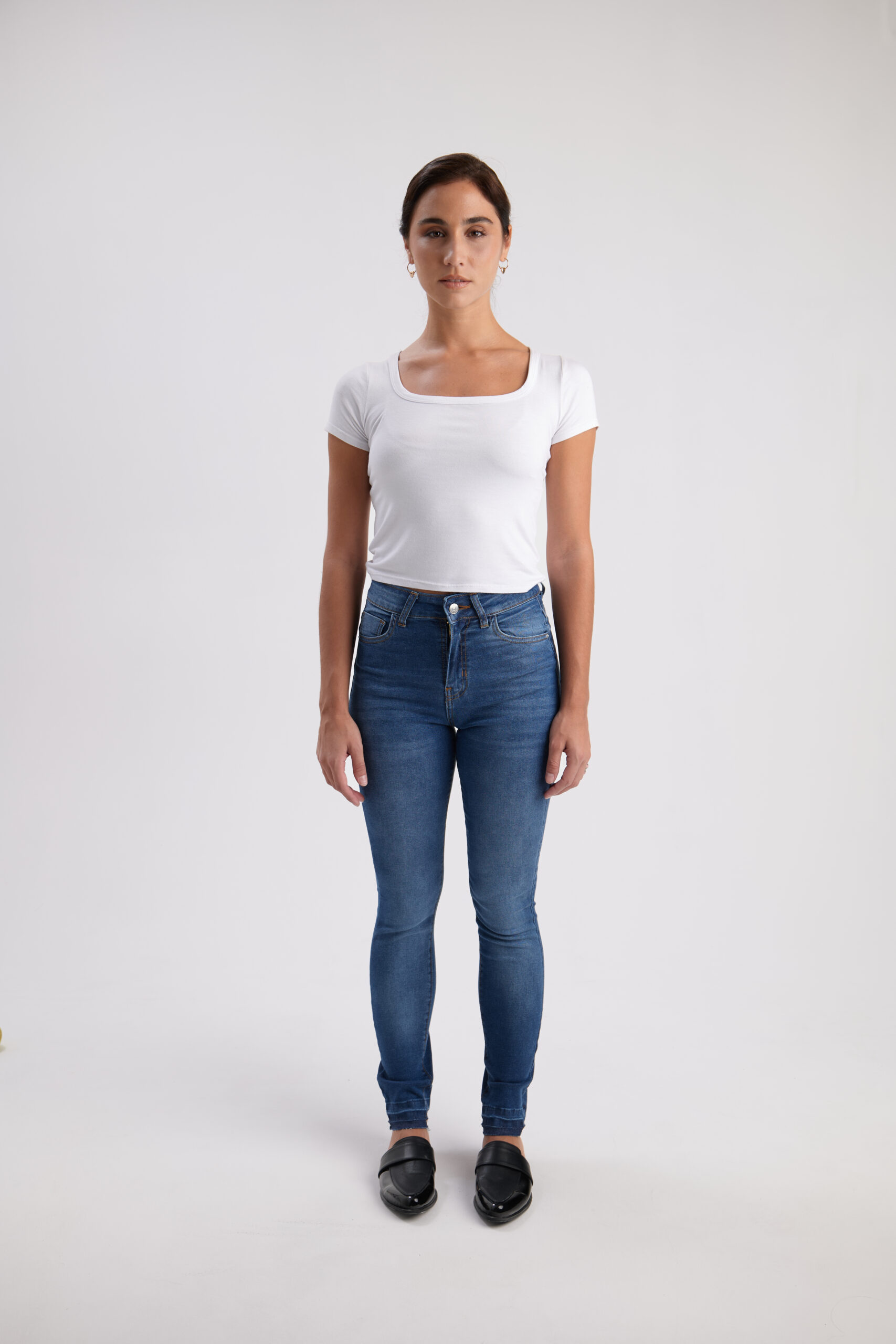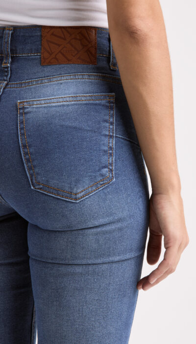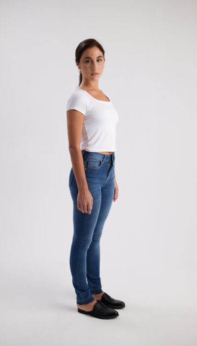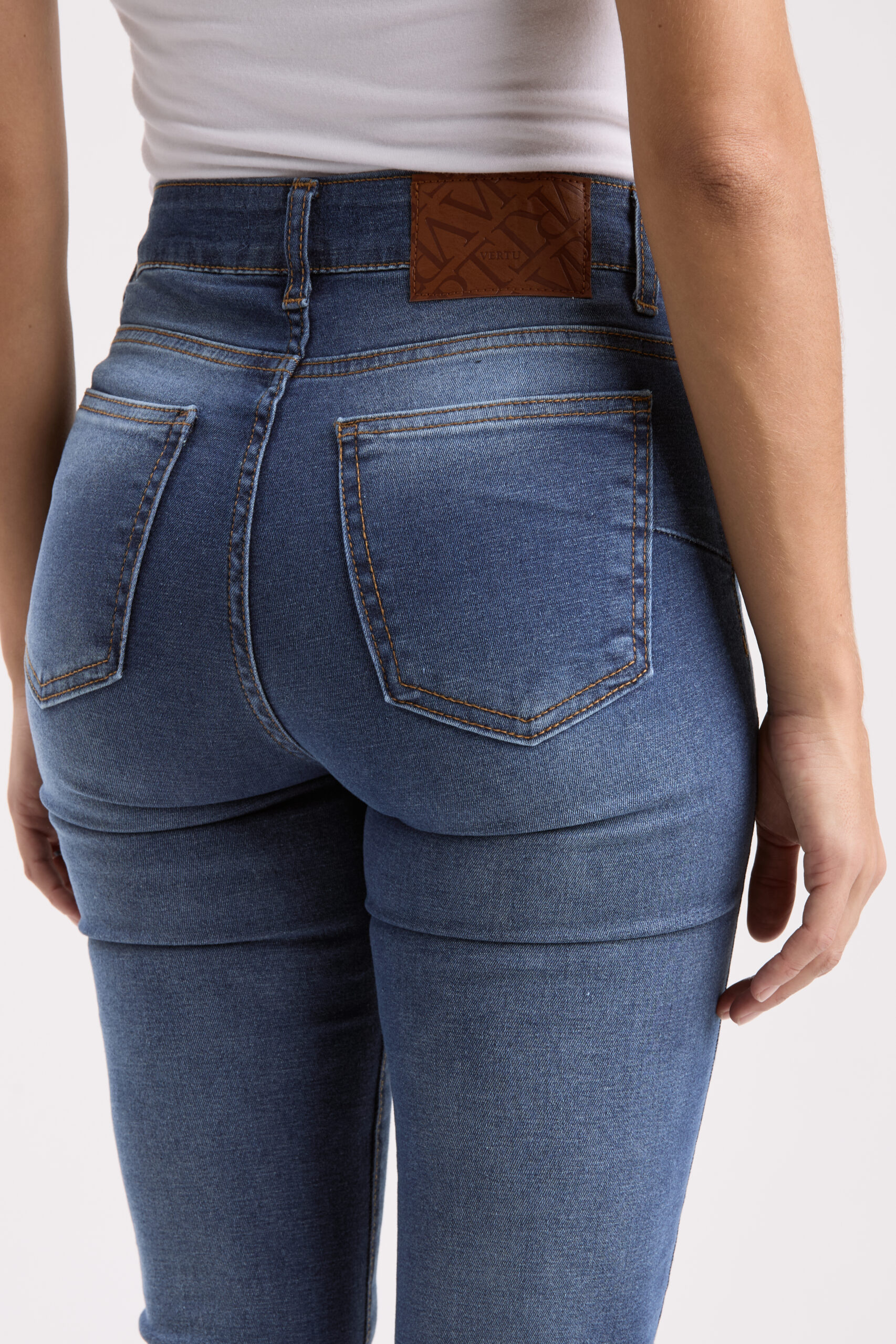 Pantalón Jean Chupin Azul Localizado Con Bigote Y Pinza Lateral Trasera Ruedo desatado Elastizado Tiro Medio