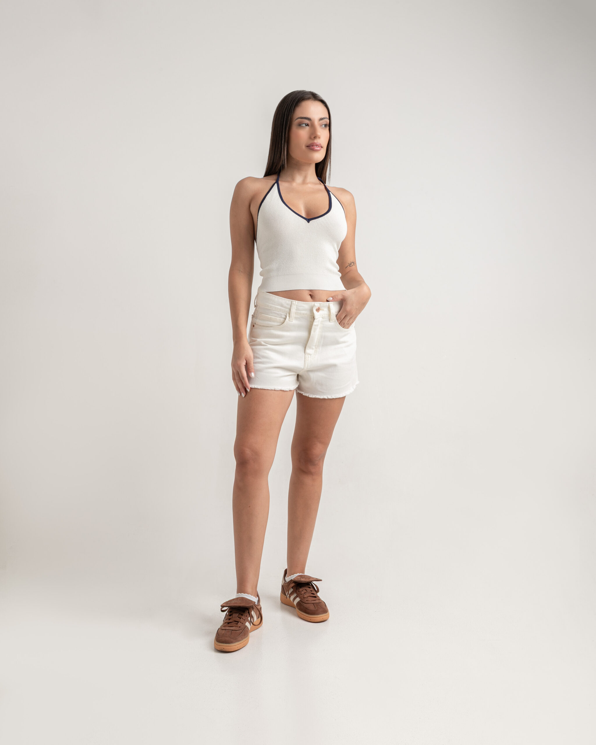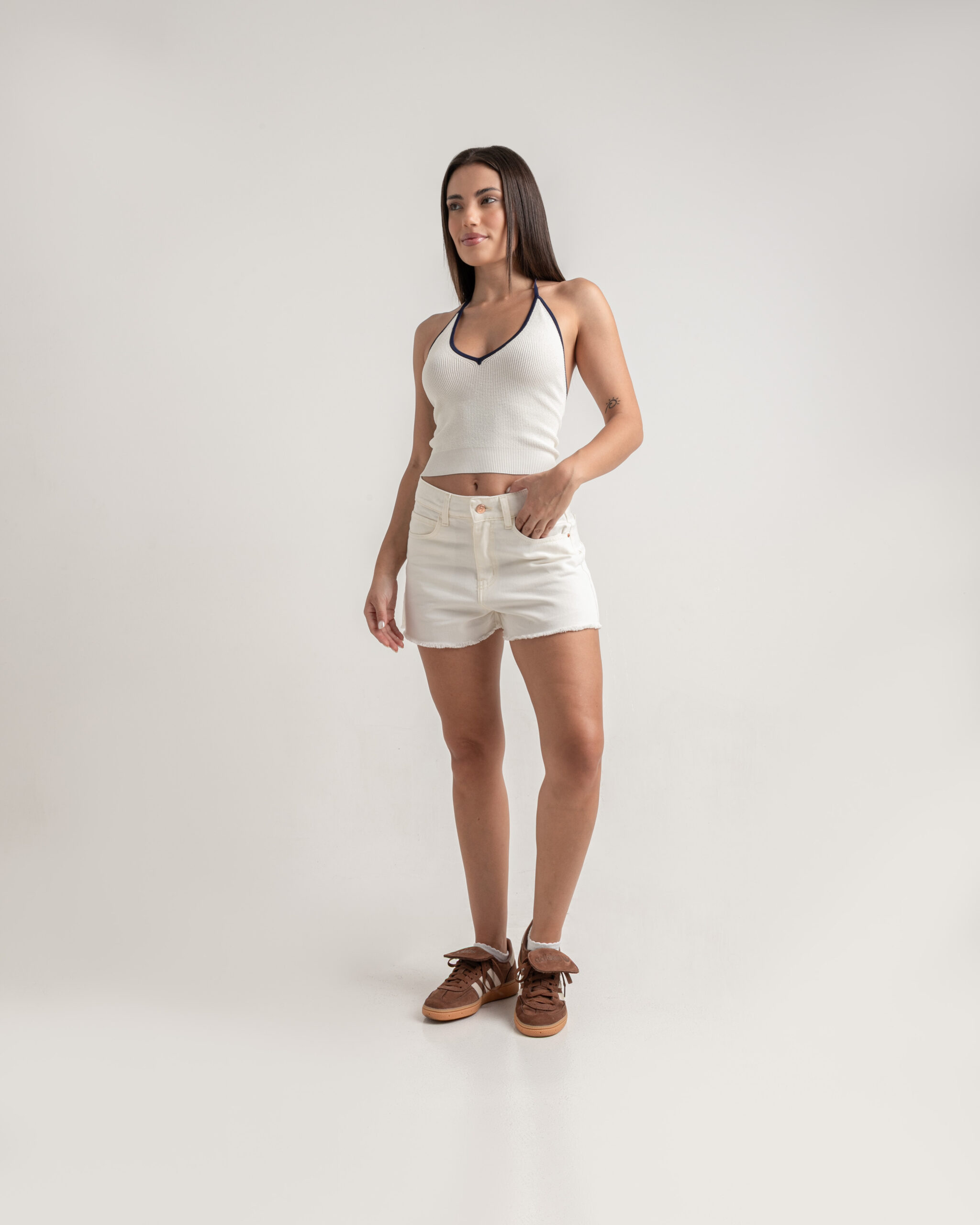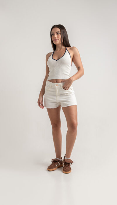 Short Jean Crema Ruedo Deflecado Clásico Rígido