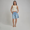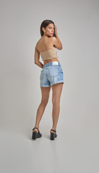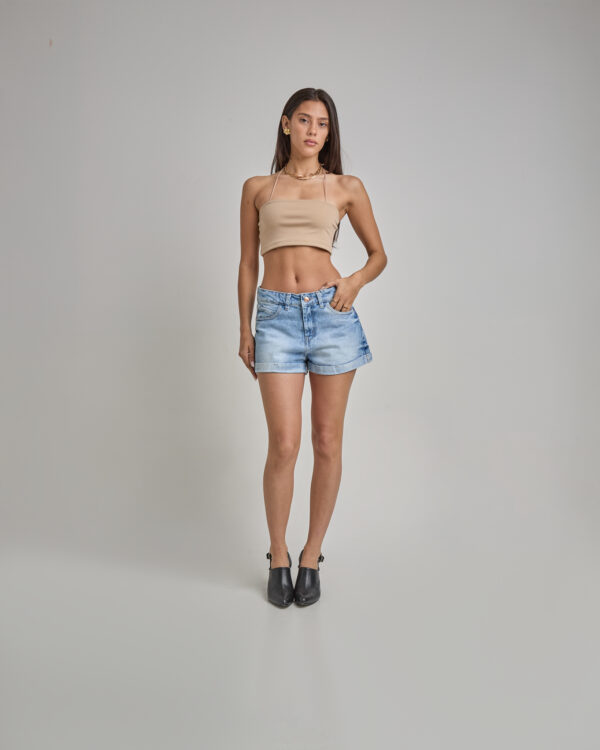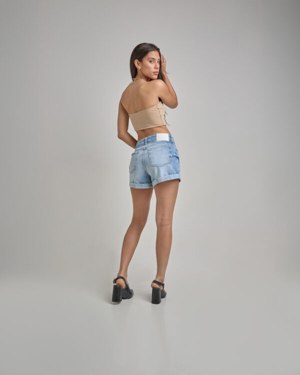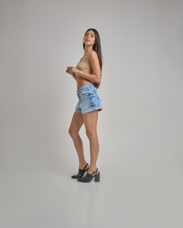 Short Jean Celeste Localizado Ruedo Doblado Con Aplique Rígido