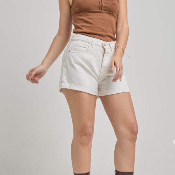 Short Jean Crema Ruedo Doblado Clásico Rígido