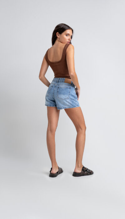 Short Jean Celeste Localizado Con Roturitas Rígido