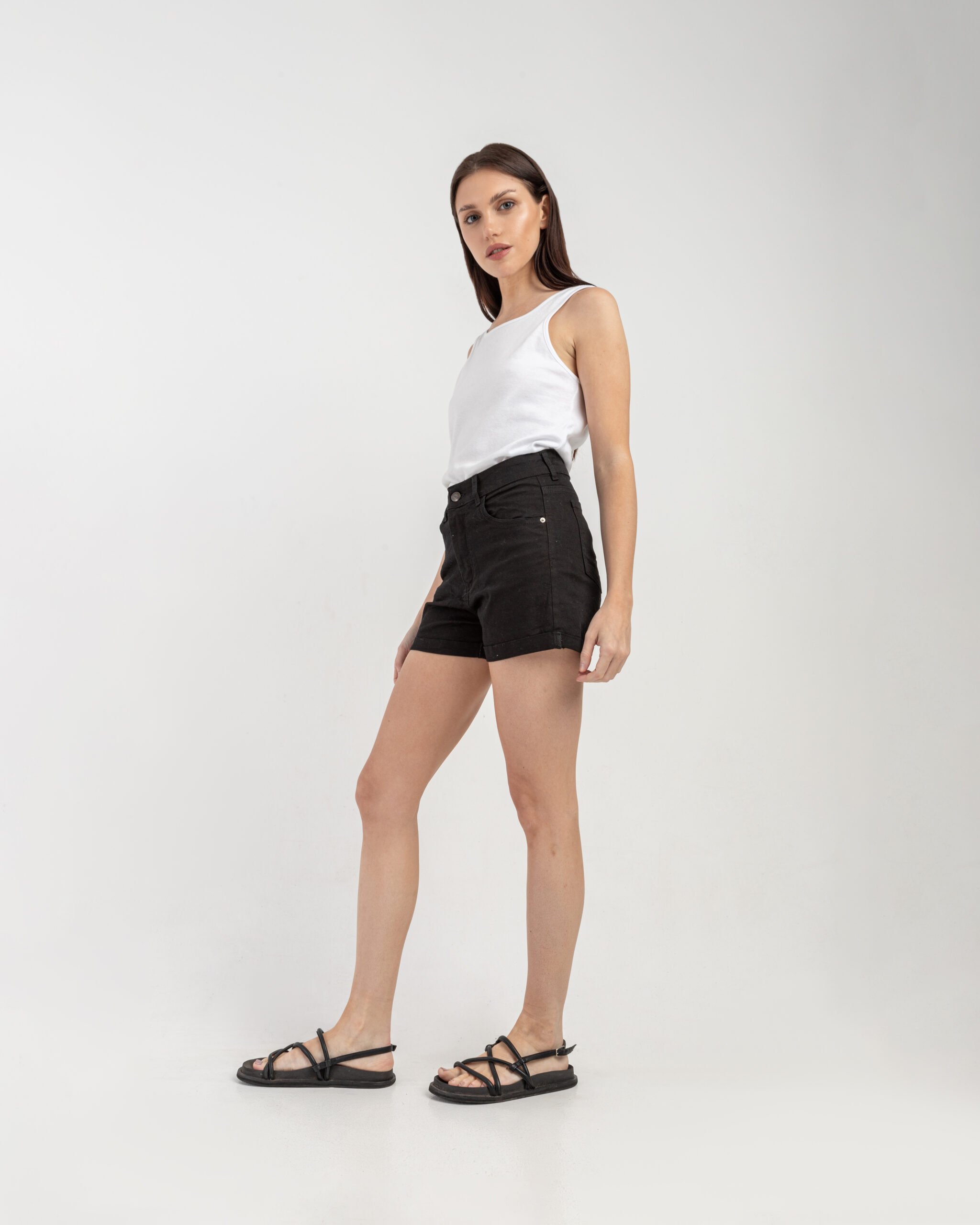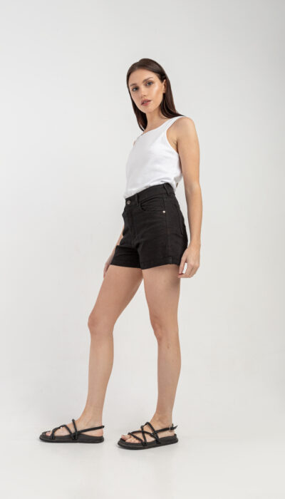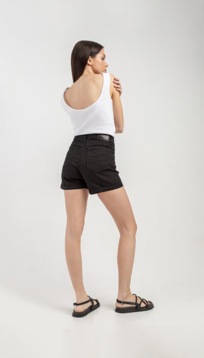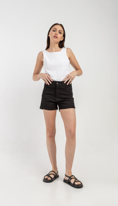 Short Jean Negro Ruedo Doblado Clásico Elastizado