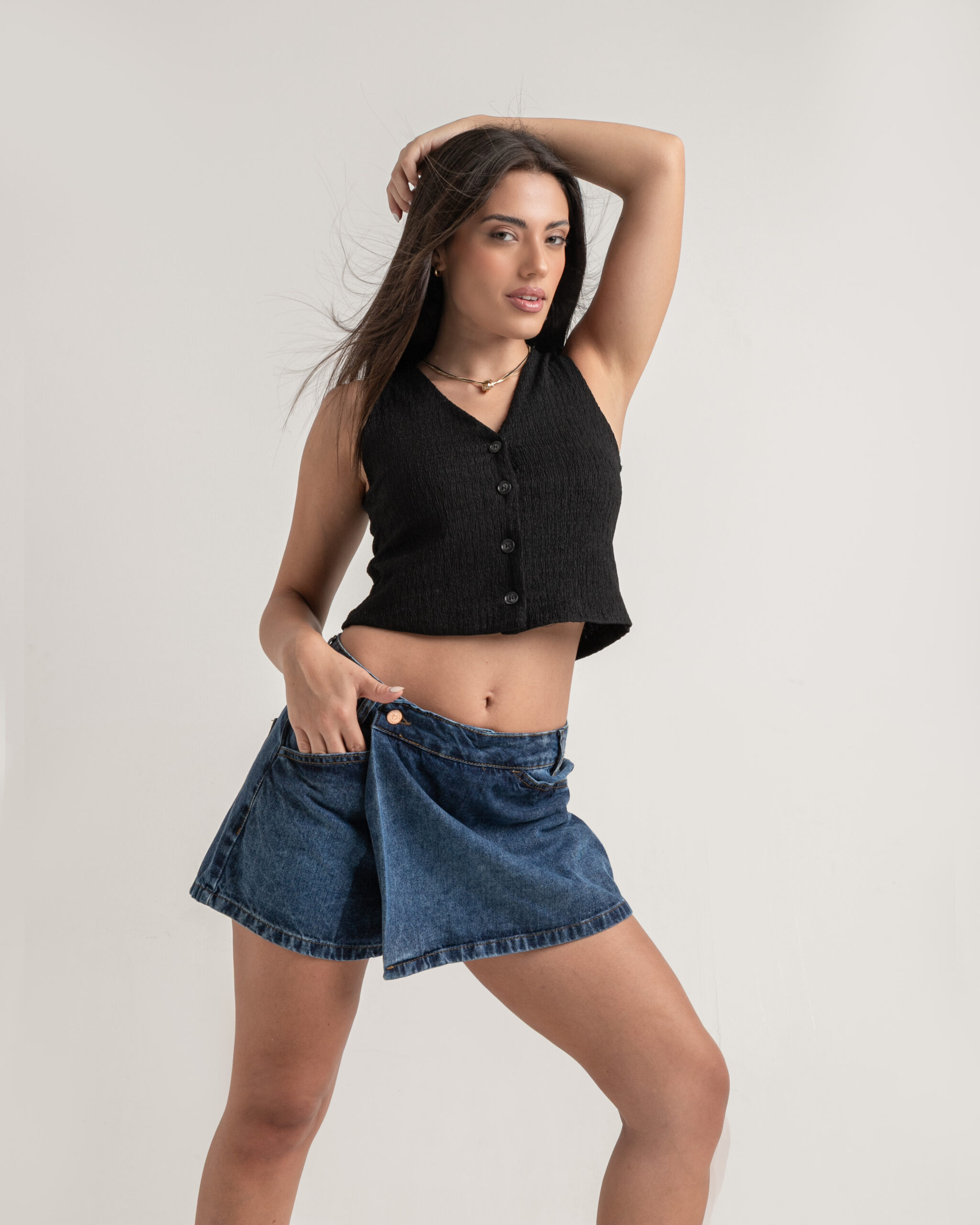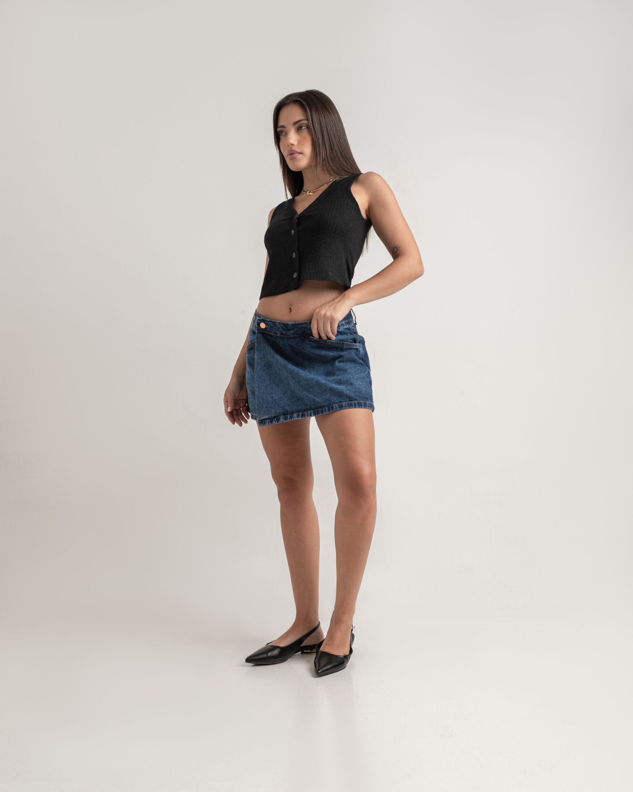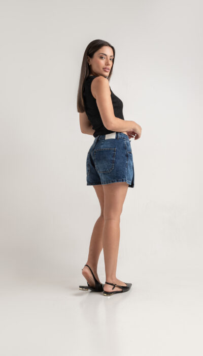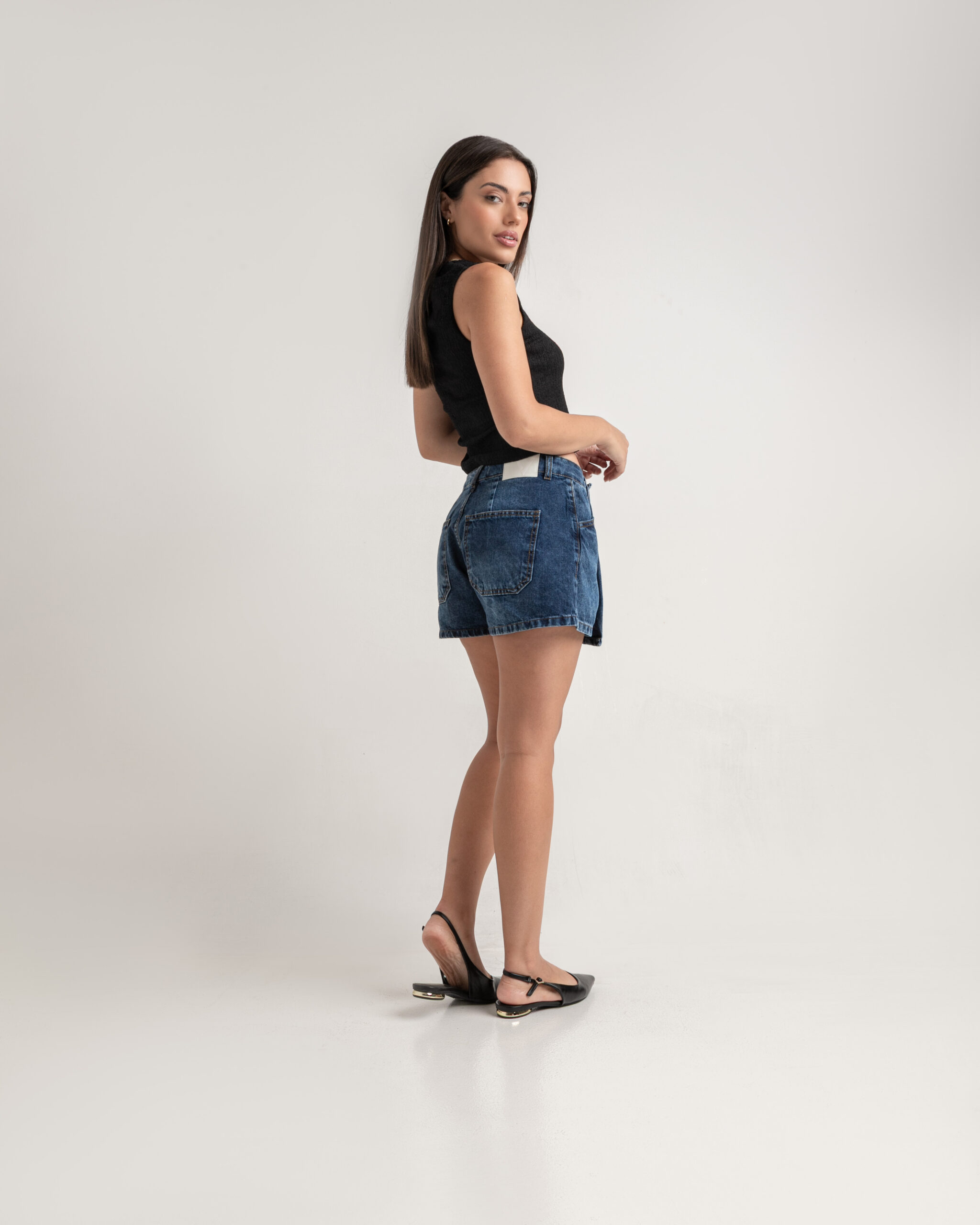 Short Mini Jean Azul Oscuro Con Bolsillo Diagonal Rígido