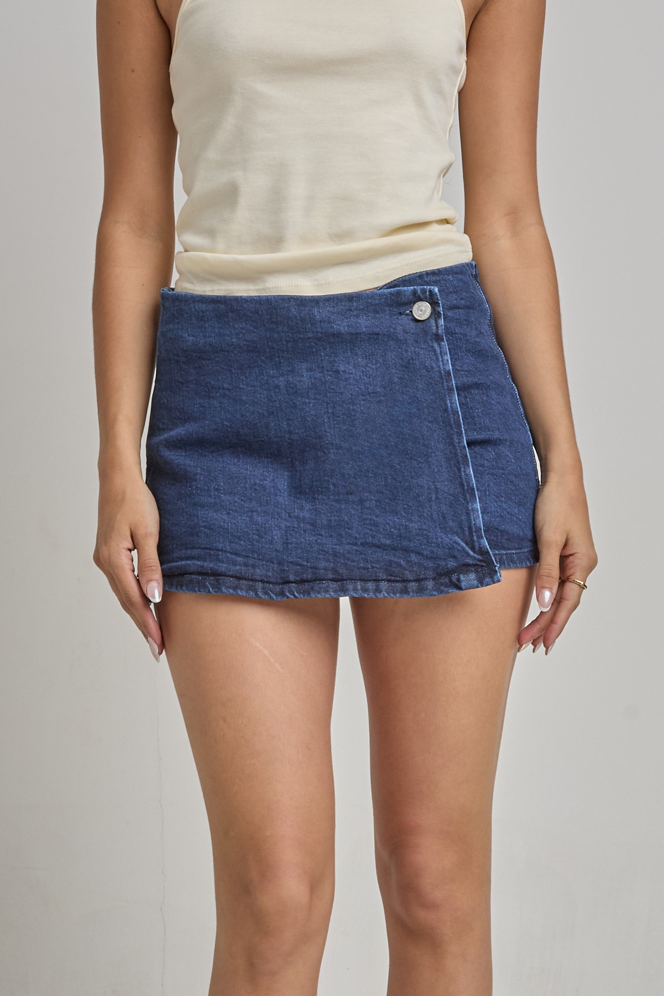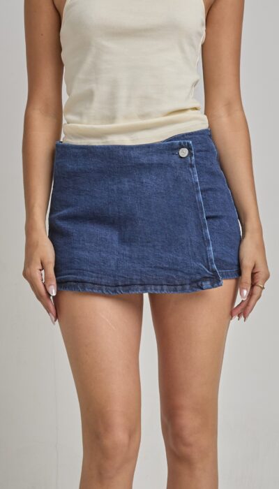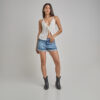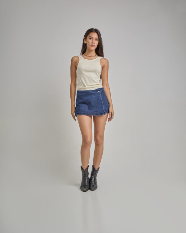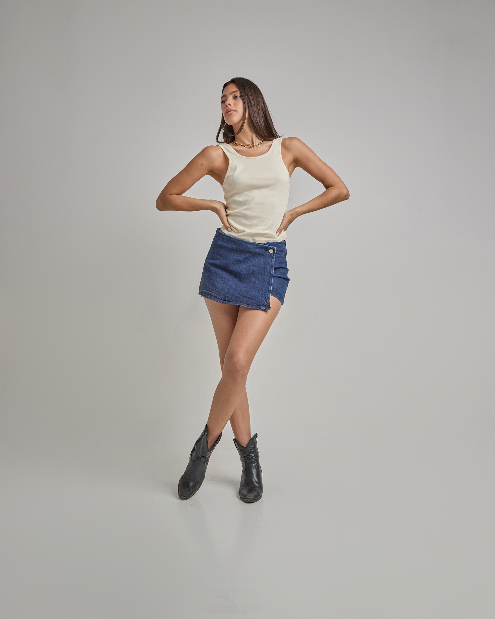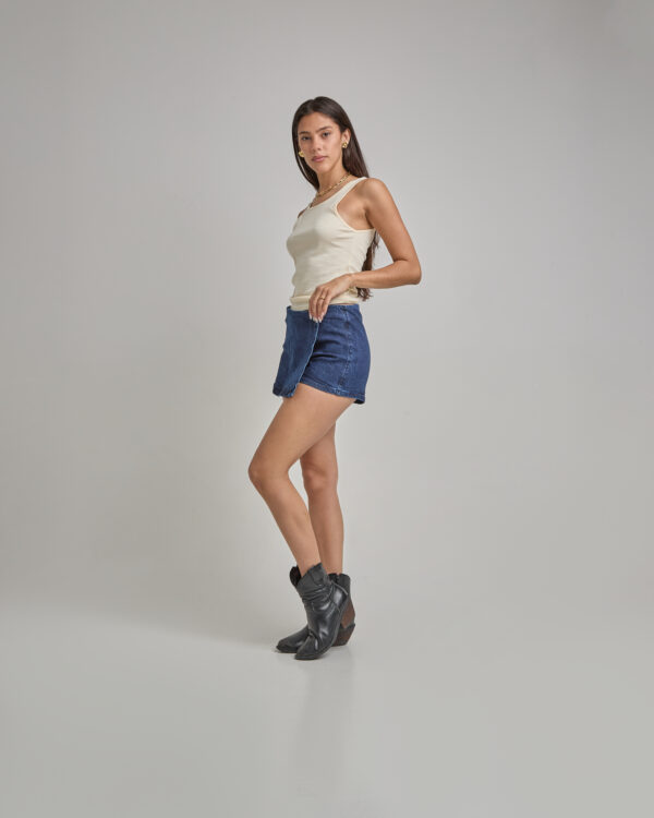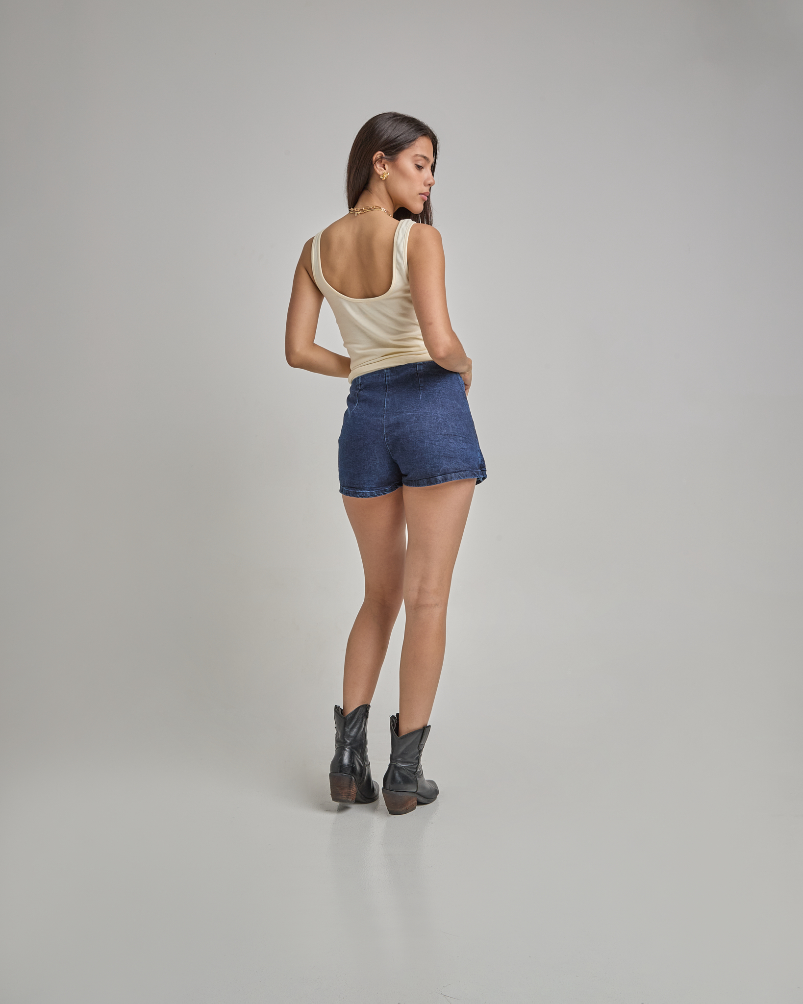 Short Mini Jean Azul Sin Cintura Con Pinza Rígido